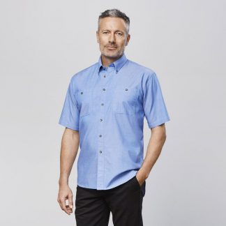 Mens Wrinkle Free Chambray Short Sleeve Shirt