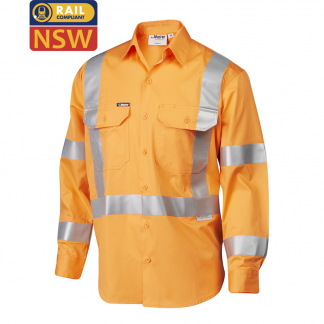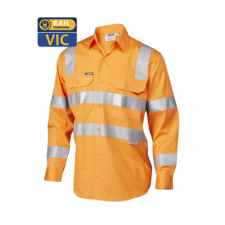 SHIRT L/SLEEVE MASTER WM420 HI VIS D/N VIC RAIL 3M TAPED 155GSM COTTON DRILL
