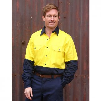 Mens Hi-Vis Cotton Drill Long Sleeve Safety Shirt