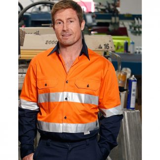Mens Hi-Vis Cotton Drill Long Sleeve Safety Shirt With 3M Scotchlitetm Reflective Tapes