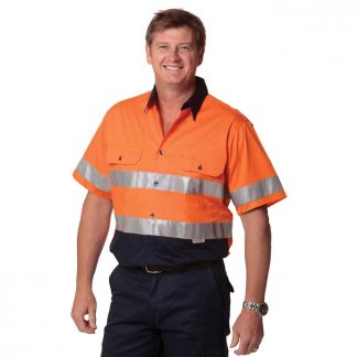 Mens Hi-Vis Cool-Breeze Cotton Twill Short Sleeve Safety Shirt With 3M Scotchlitetm Reflective Tapes