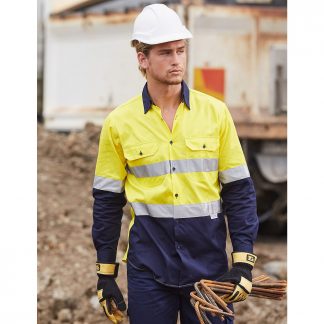 Mens Hi-Vis Cool-Breeze Cotton Twill Long Sleeve Safety Shirt With 3M Scotchlitetm Reflective Tapes