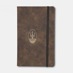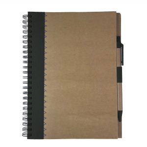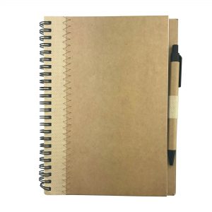 - A5 recycled paper notebook with side spiral binding