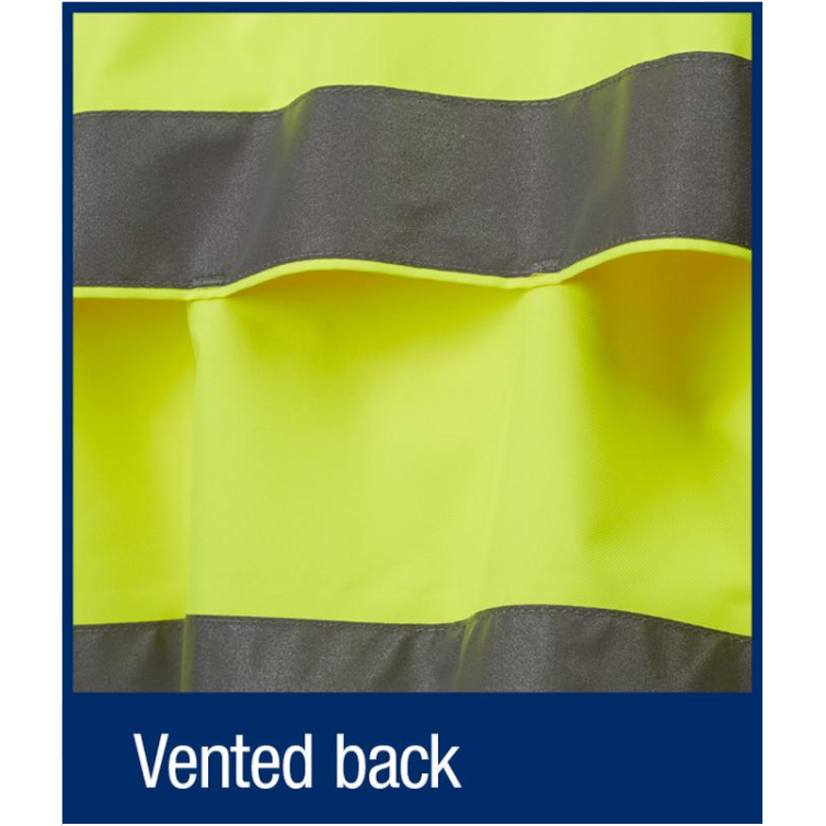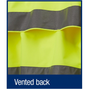 - Hi-Vis Class D/N (day or night use) Reflective tape – H Pattern front, hoop around arms and over shoulders. Biomotion protection – additional reflective tape fitted to arms