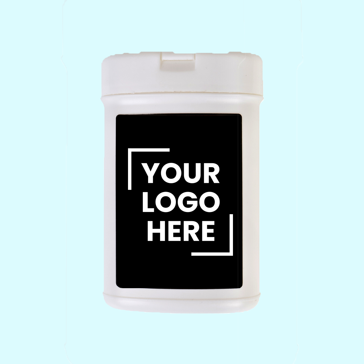 Our oval shaped canister with a quick pop open lid is great for hand sanitising right. . Each canister provides 20 antibacterial wipes with a fresh citrus scent, making for a fine personalised gift for valued employees or customers.