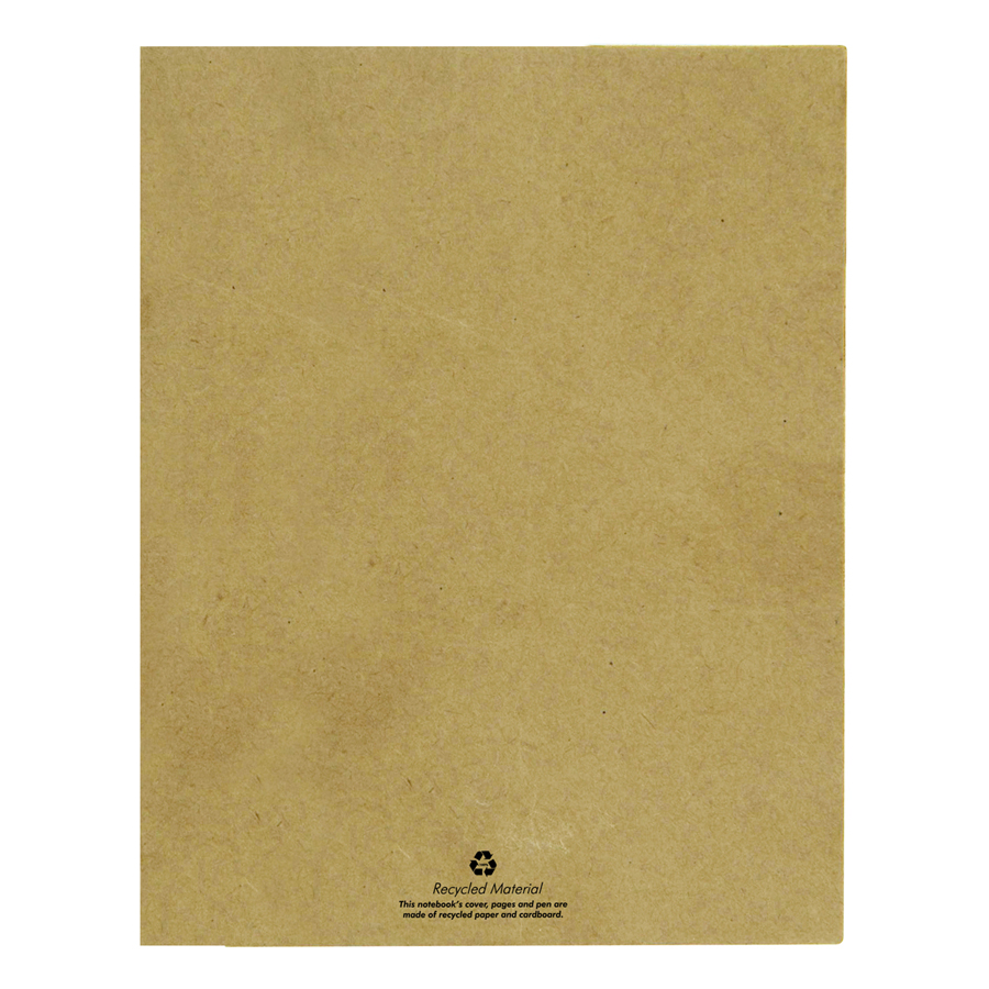- A note book with 80 pages of blank recycled paper inside and a thick recycled paper cover.