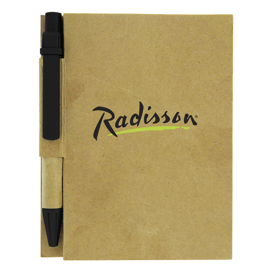 - It includes a pen made from recycled paper and biodegradable corn resin.
