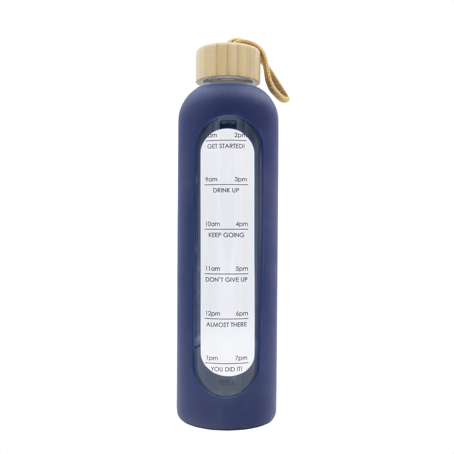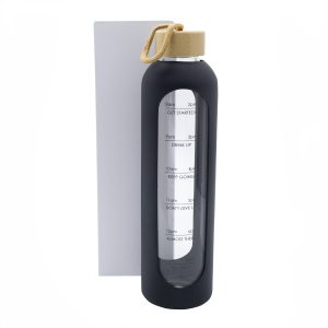 Introducing the 1L Arlo Glass Water Bottle, where functionality meets motivation in every sip. Crafted from durable Borosilicate glass and adorned with a sleek silicone cover, this bottle is designed for those who value both style and substance.