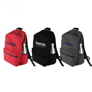 - Large zipped front pouch and two side pockets for drinking bottles.