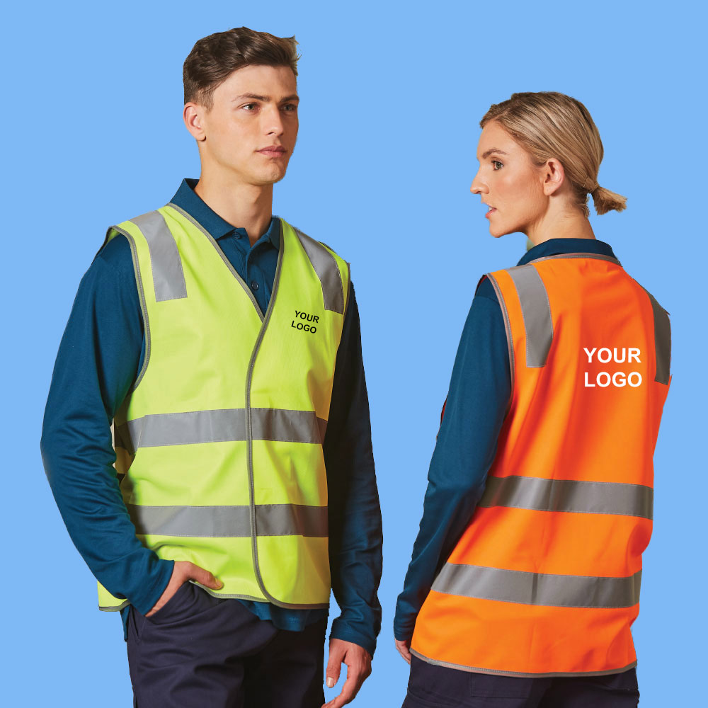 to protect fraying of fabric. Hoop pattern with generic reflective tapes for night safety. Conforms to AS/NZS 4602.1:2011 Class D/N. Day and night safety wear.