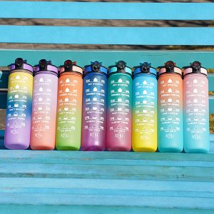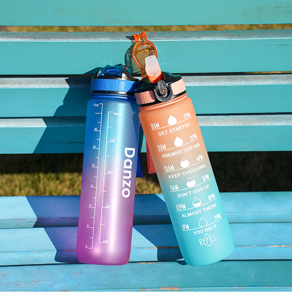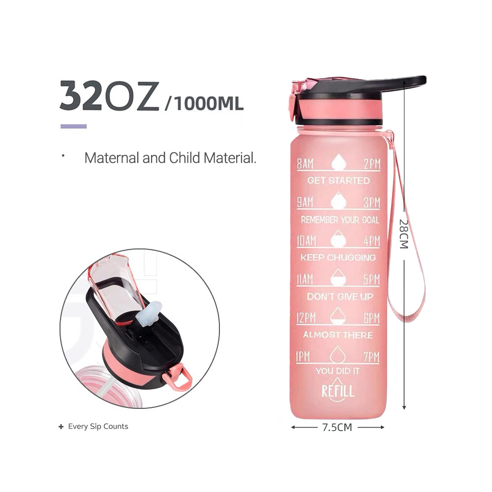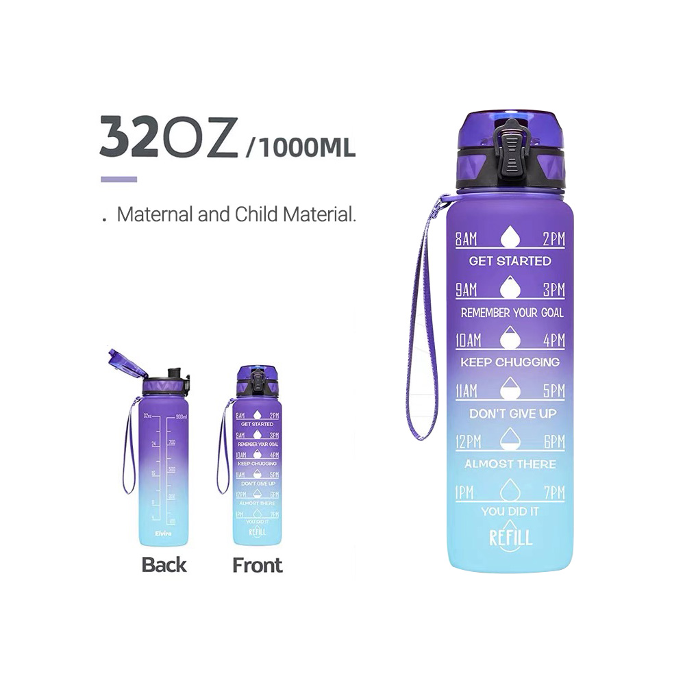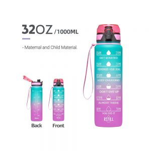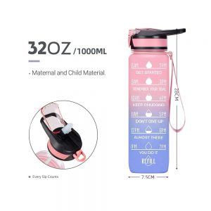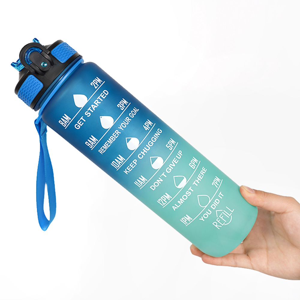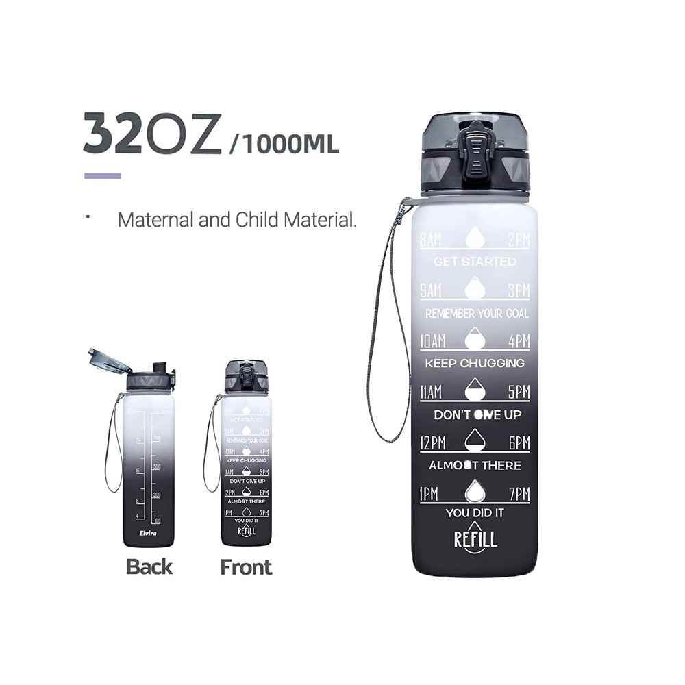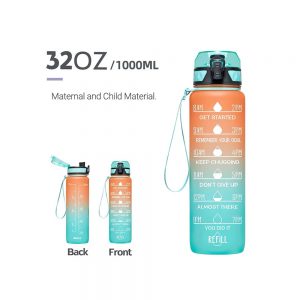 1L Water Bottle Motivational Drink Flask With Time Markings BPA Free Sport Gym