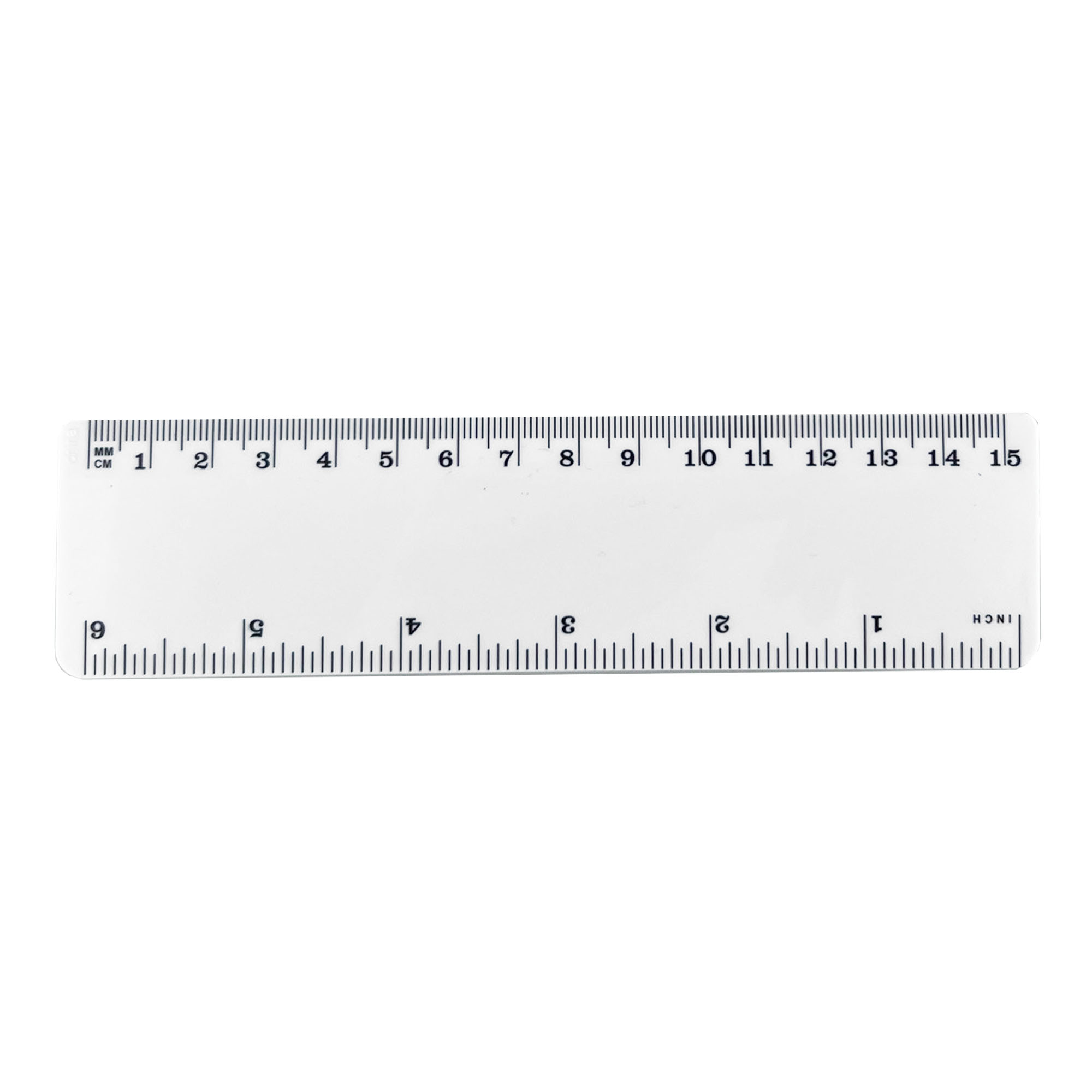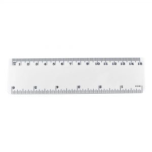 Solid 15cm plastic ruler with one side graduation in centimetres.