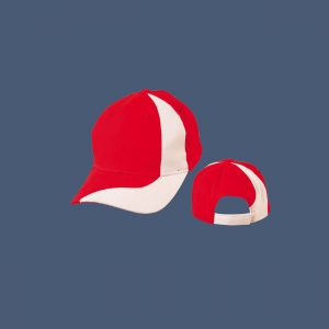 Contrasting stripe across crown & peak. Short velcro crossover.