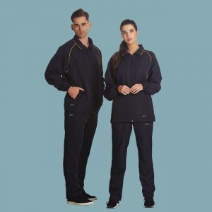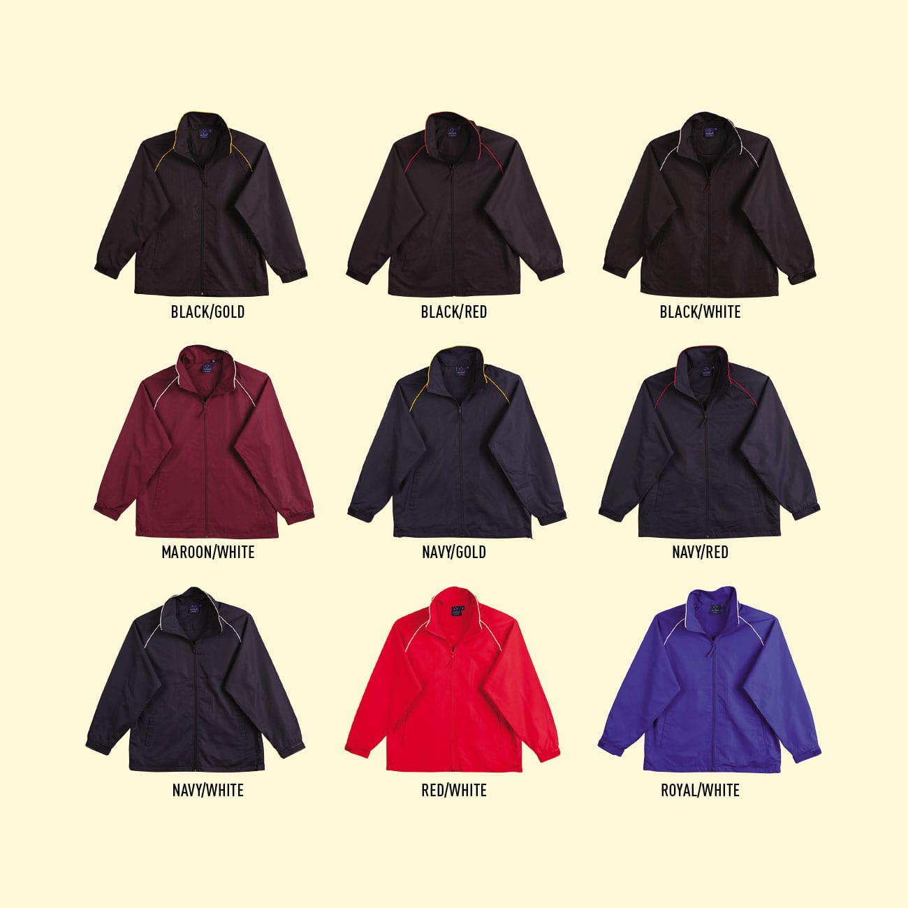 Piping on collar and sides. Two-side pockets. Front zipper.