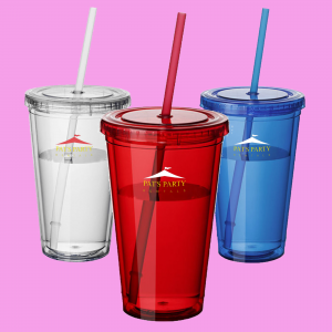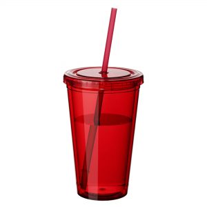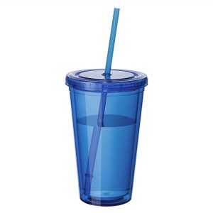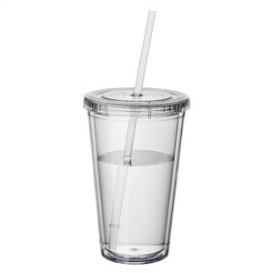 - Leak tight screw on lid with long plastic straw which has a stopper