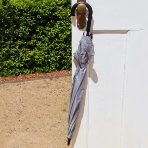 Additionally, it has a large u-shaped handle to hook the umbrella over your arm to transport it, when you have your coffee in one hand and your phone in the other on your way to yet another meeting!