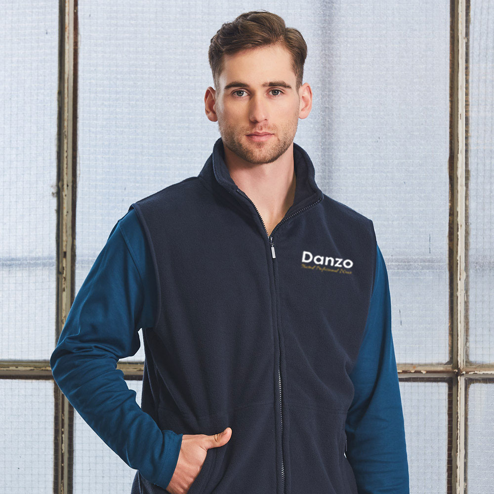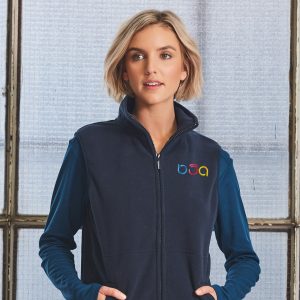 Description: Full front zip. Contrast piping around the armhole. Draw cord, toggle & side pockets. These popular vests provide warmth while allowing freedom & arm movements.