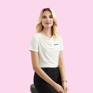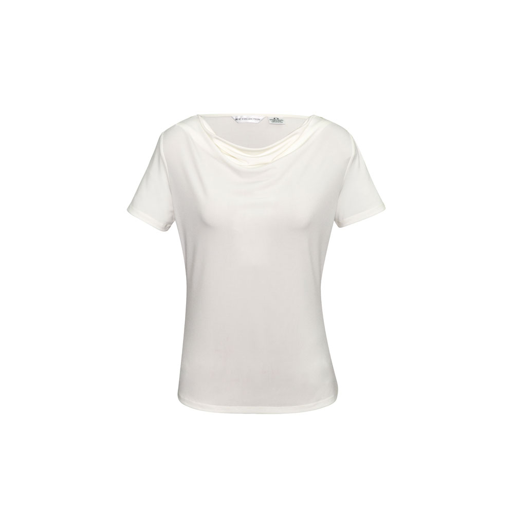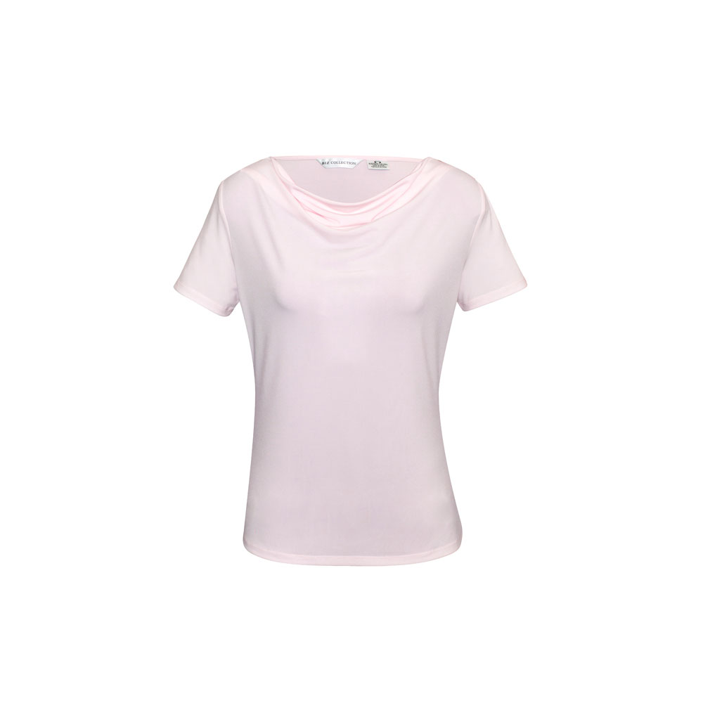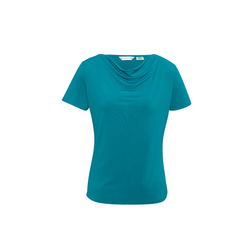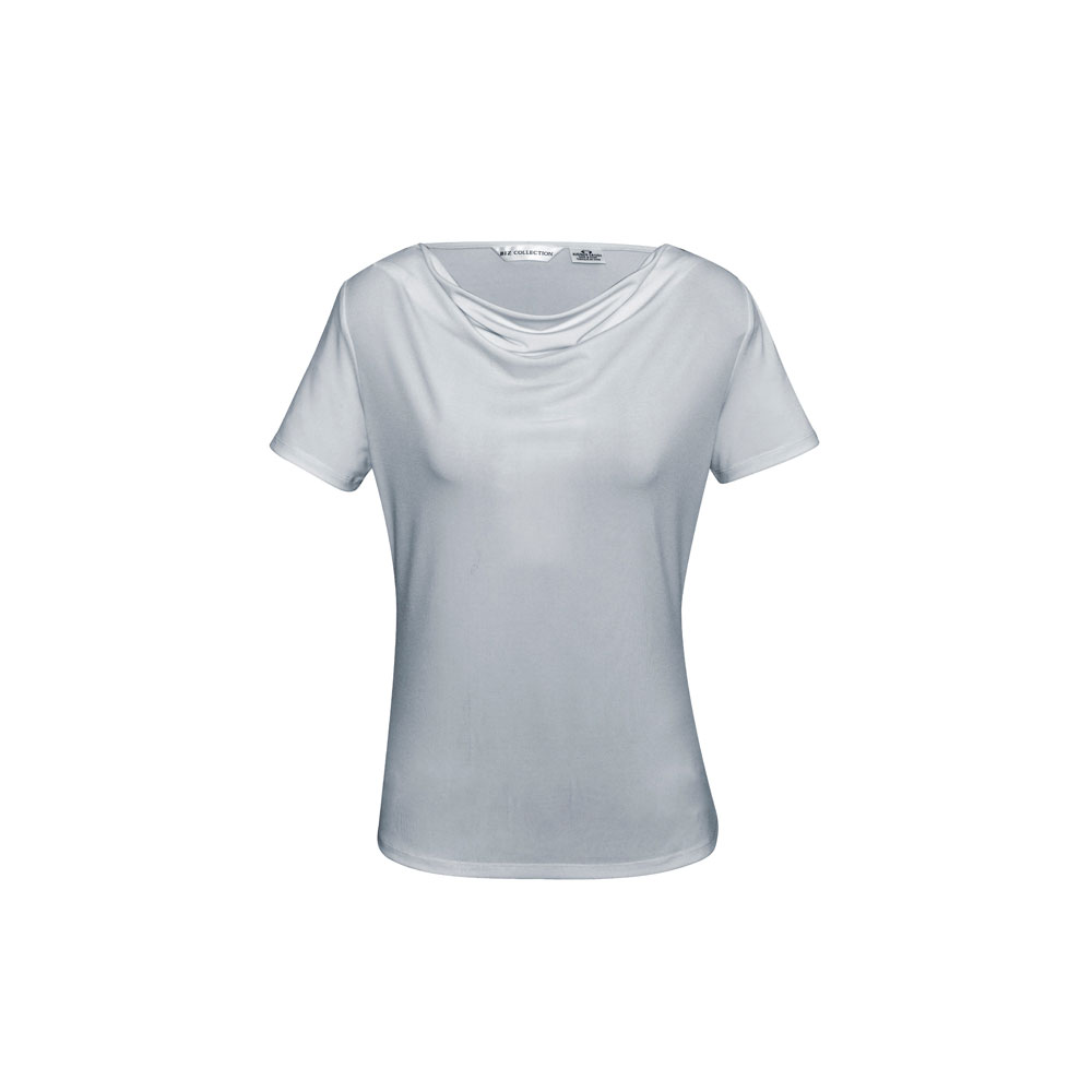 The luxurious jersey knit and softly draped neckline creates an elegant, effortlessly styled professional appearance.