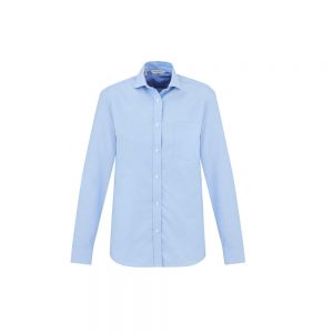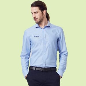 Mens features modern collar, chest pocket, twin back pleats and