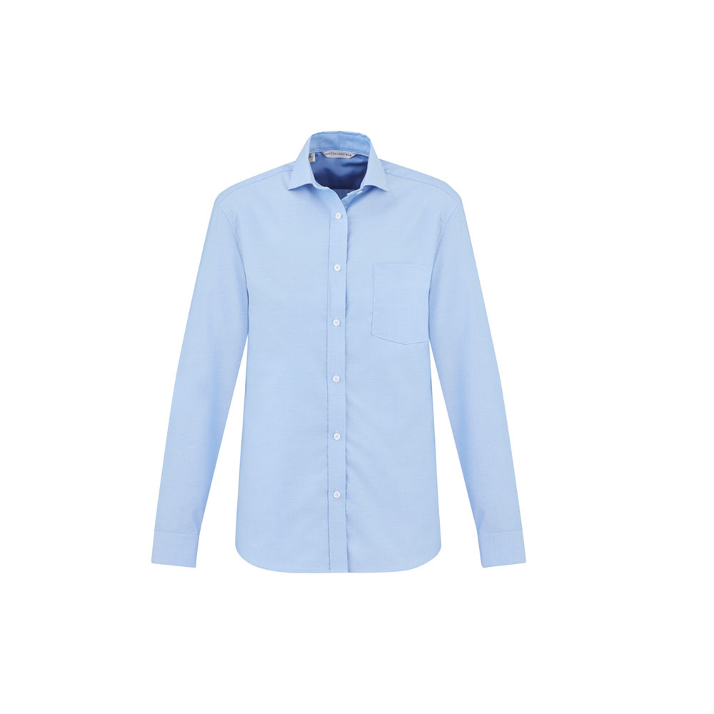 adjustable cuff. Can be worn tucked in or out