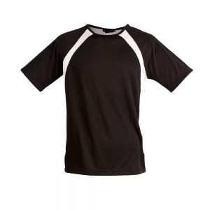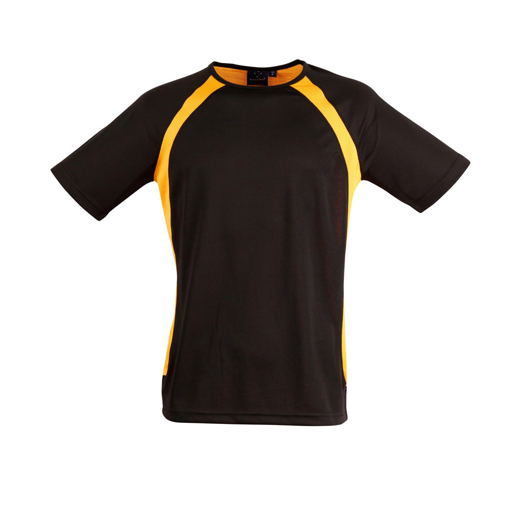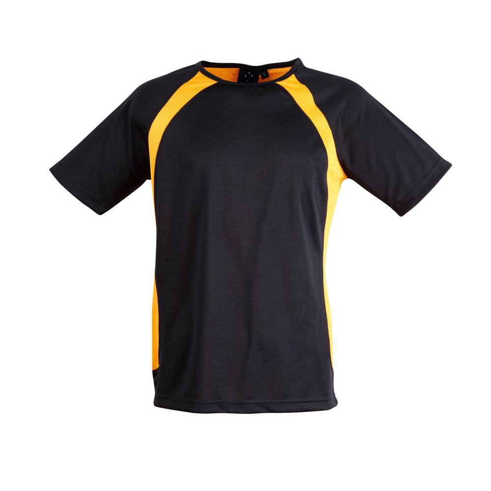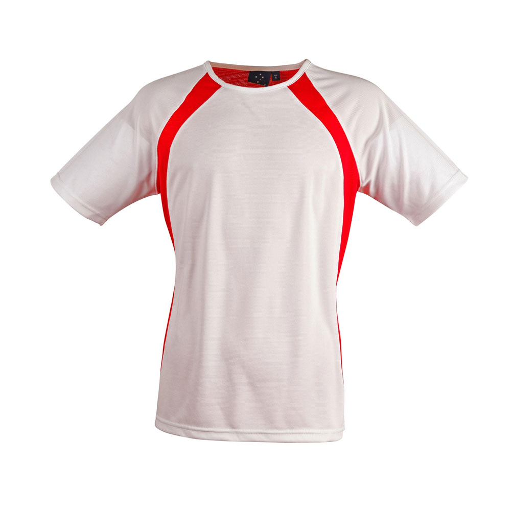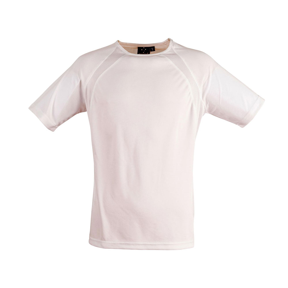 Moisture management fabric. Ultralight mesh in contrast contoured side panels for ventilation. Excellent fit and comfort for athletes.