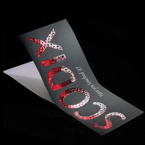 Scodix expresses between SPOT UV and 3D resin raised finish. Available in clear ( which is used on colour printed area ) or metallic ( foil ) finishes, it is great for luxury and high-class product labels, wine labels, and so on.