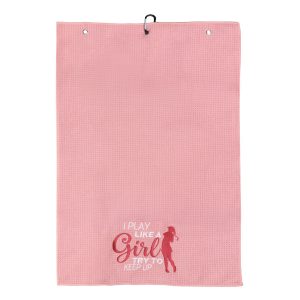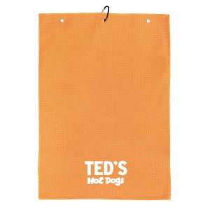 Introducing our premium Golf Towel crafted from luxurious 400gsm microfiber waffle fabric, designed to elevate your game with superior performance and style. Perfectly sized at 40cm x 60cm, this towel is ideal for keeping your clubs and hands clean and dry during every round. Its ultra-absorbent texture efficiently removes dirt and moisture, ensuring pristine equipment and a confident swing. Elevate your golfing experience with our durable and stylish Microfiber Waffle Golf Towel, the perfect companion on the course.