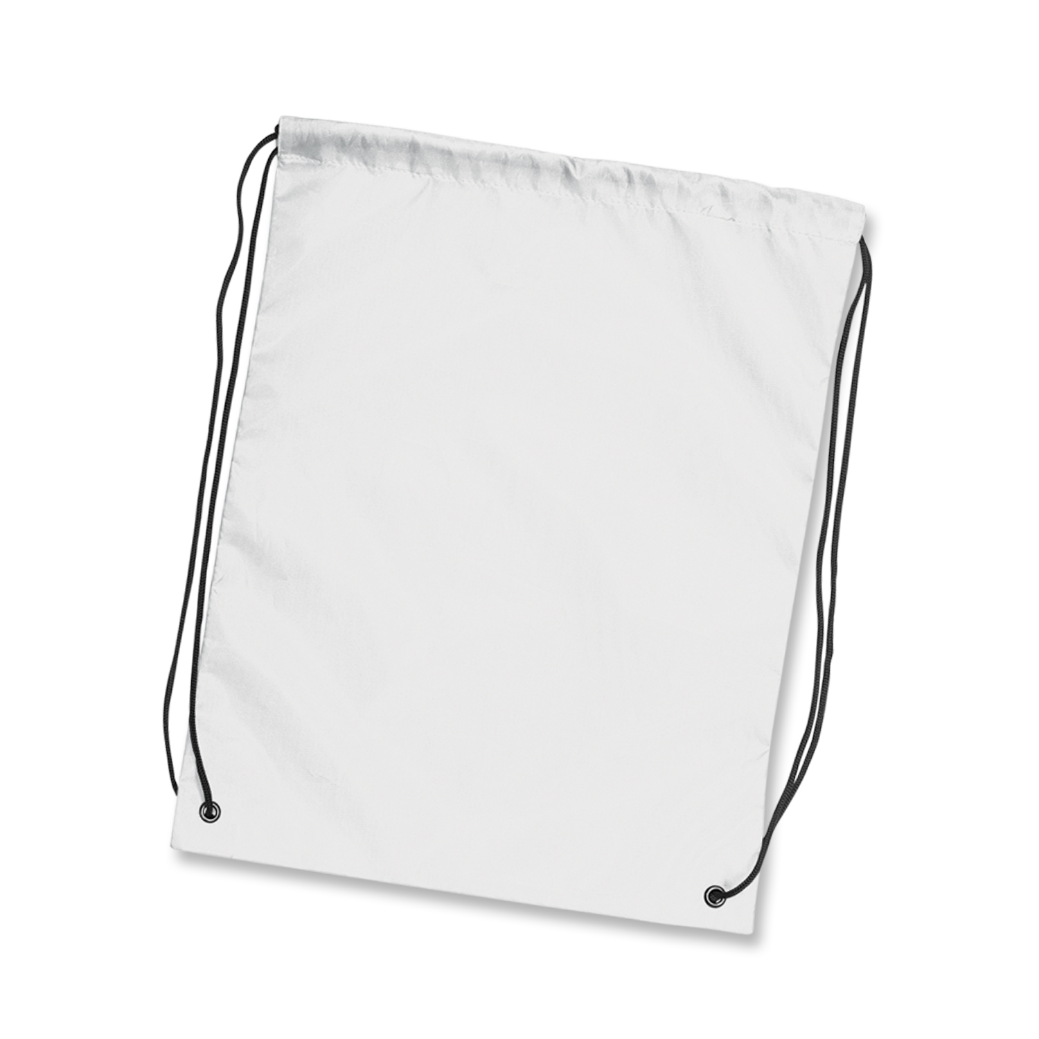 Affordable drawstring backpack which is manufactured from 210D polyester and has riveted metal eyelets at the base for added strength.