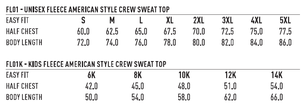 FL01 | FL01K Eagle Fleece American Style Crew Sweat Top