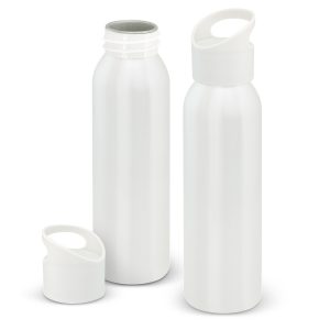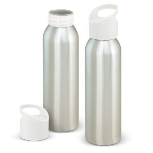 Lightweight 700ml aluminium drink bottle which has a secure screw on lid with a carry handle. It is BPA-free and can be presented in an optional black gift box. This product is not dishwasher safe and handwashing is recommended.