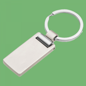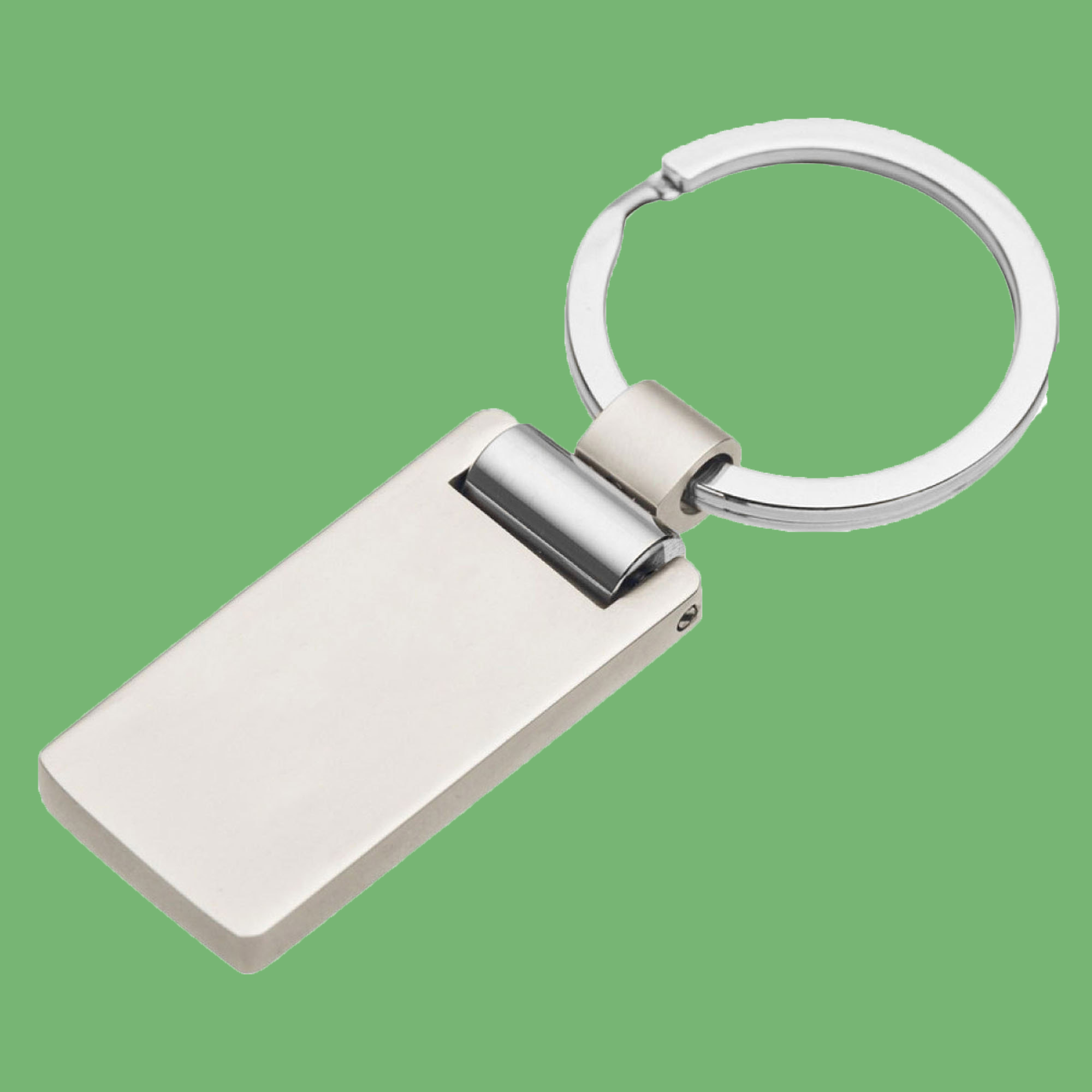 Rectangular shape with softly rounded edges, a cut-out hole with a swivel hinge on the top