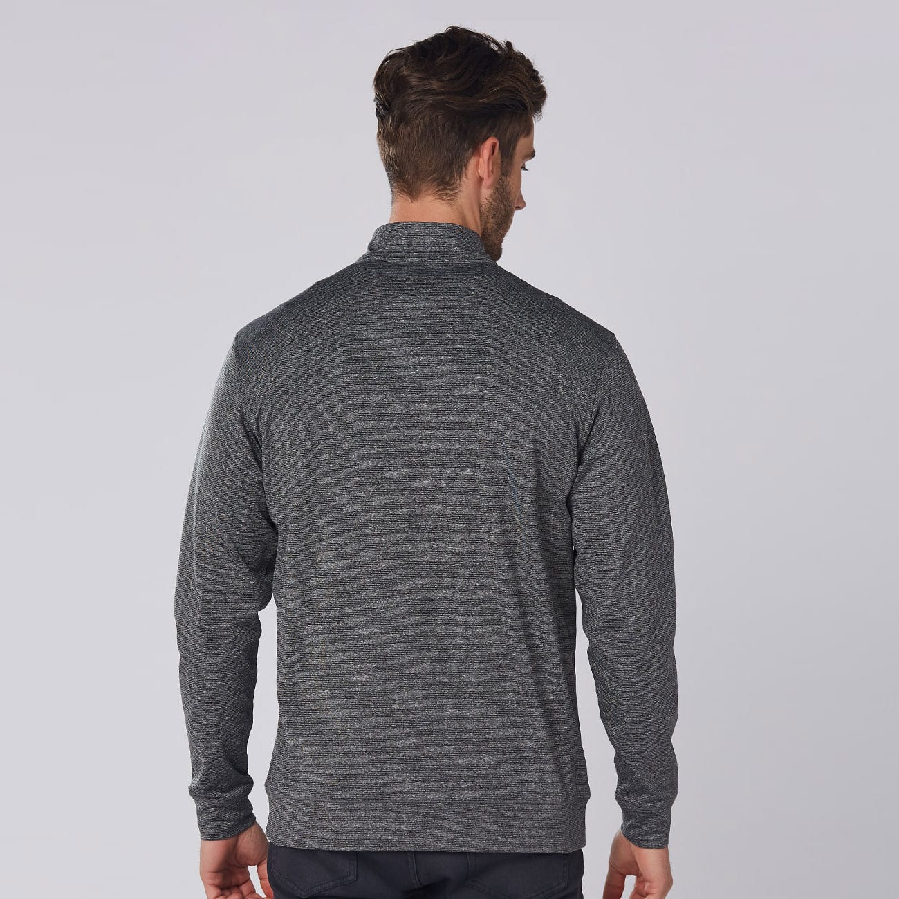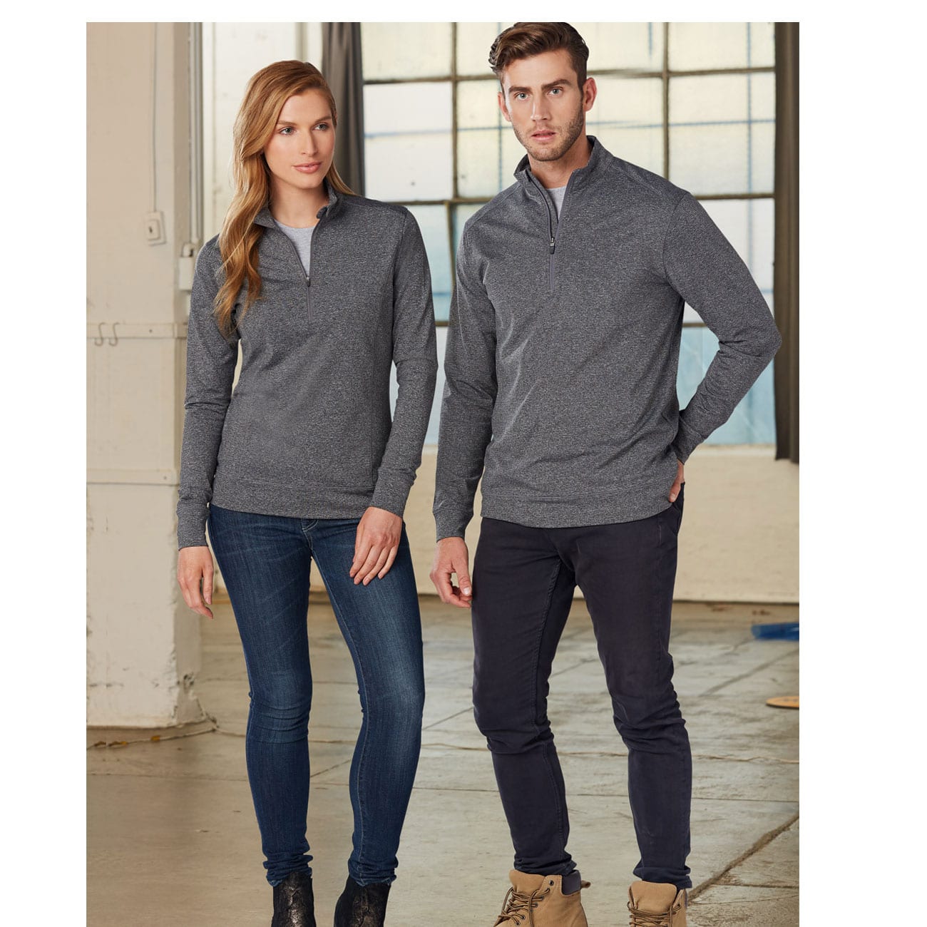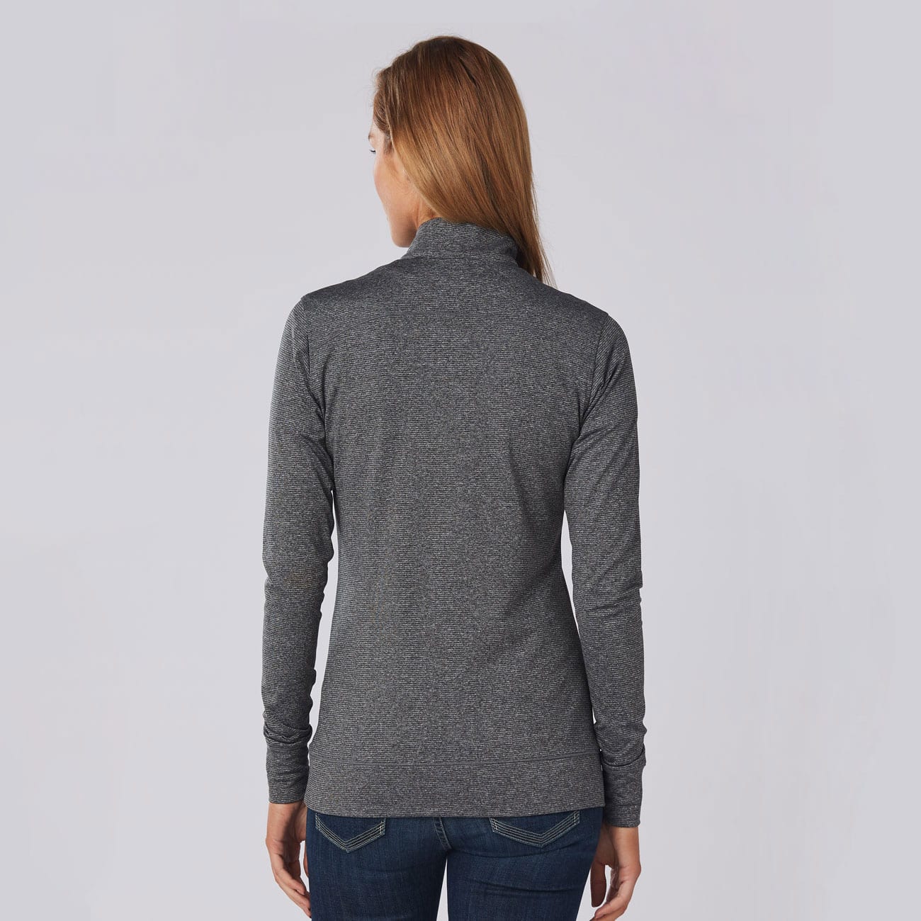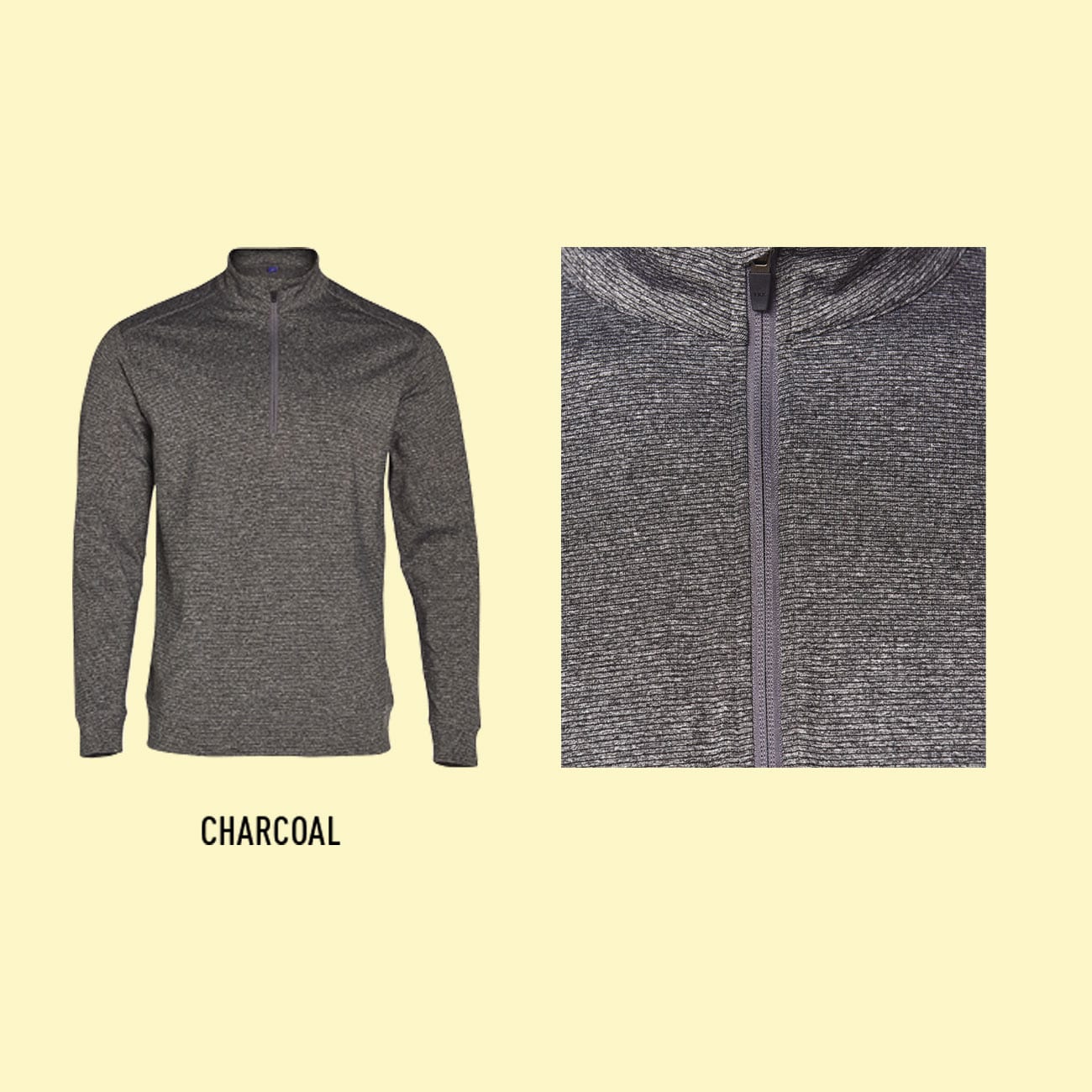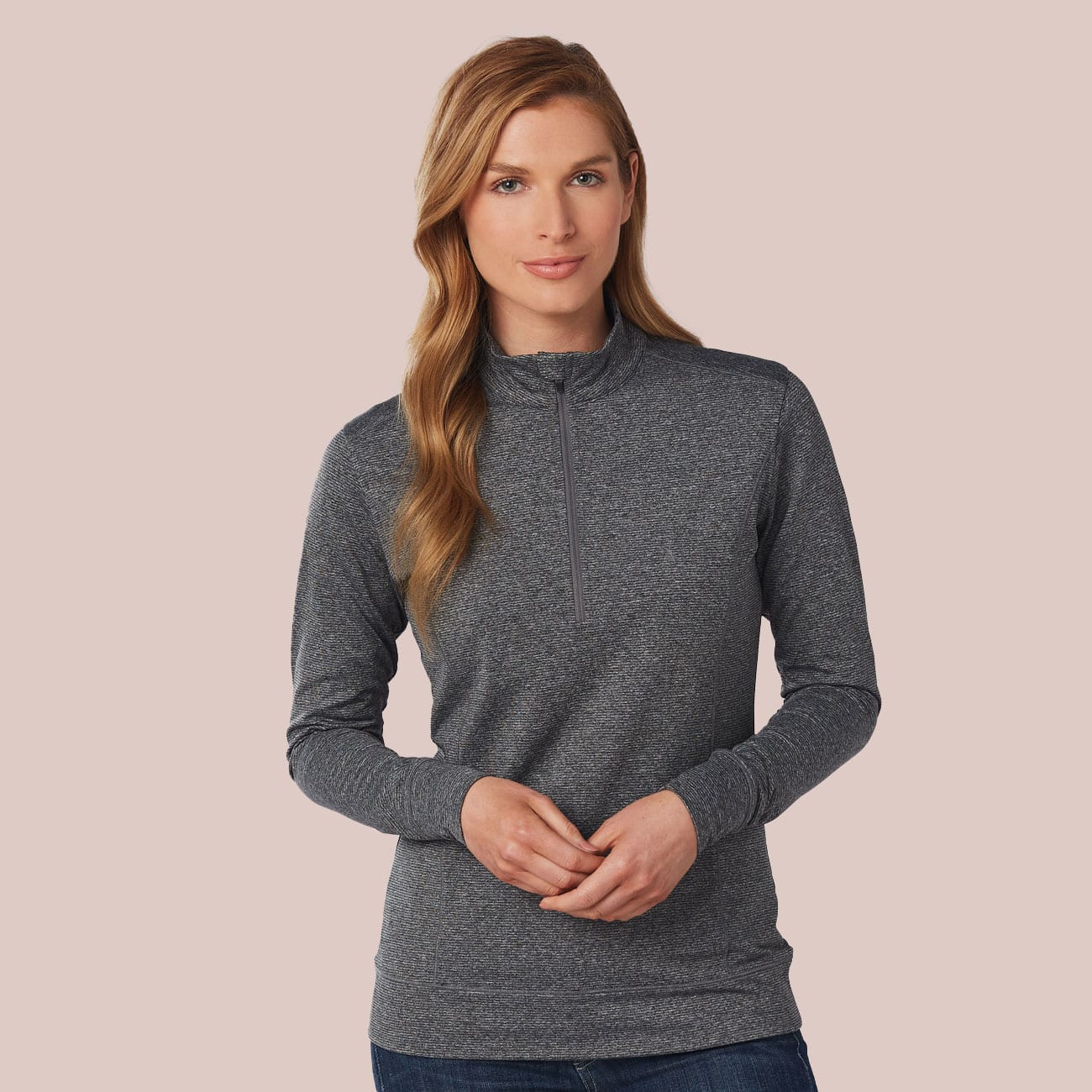 Warm up Heather top with Half zip front and horizontal feature stitch. Sleeve has a double cuff.