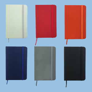 Smooth debossable PU cover notebook has a ribbon page marker.