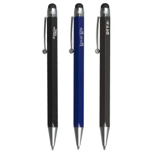 - Twist action Aluminium Pen with stylus and a hexagonal shaped barrel