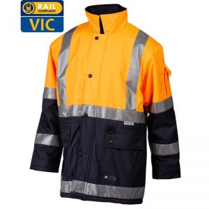 - Hi-Vis Class D/N (day or night use) Reflective tape, hoop pattern around body, arms and over shoulders – Safety Orange VIC Rail Compliant