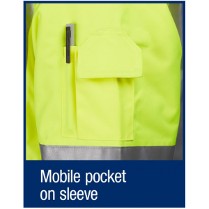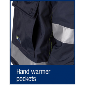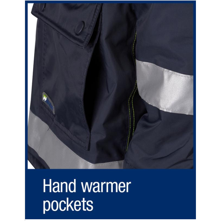 - Pockets: 2 Press stud fastened lower pockets including integrated hand warmer pockets, internal chest pocket and mobile phone pocket on sleeve