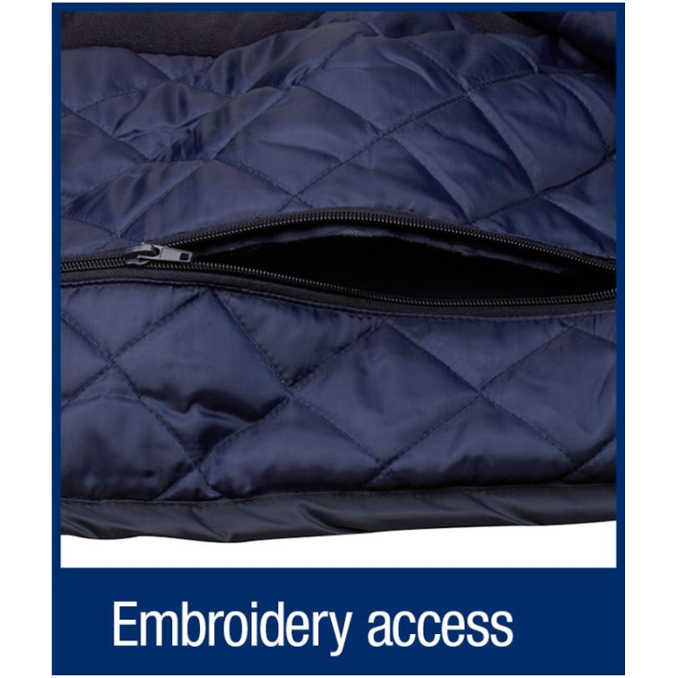 - Polyester/PU & Nylon/PVC shell with polar fleece quilted lining