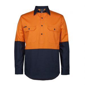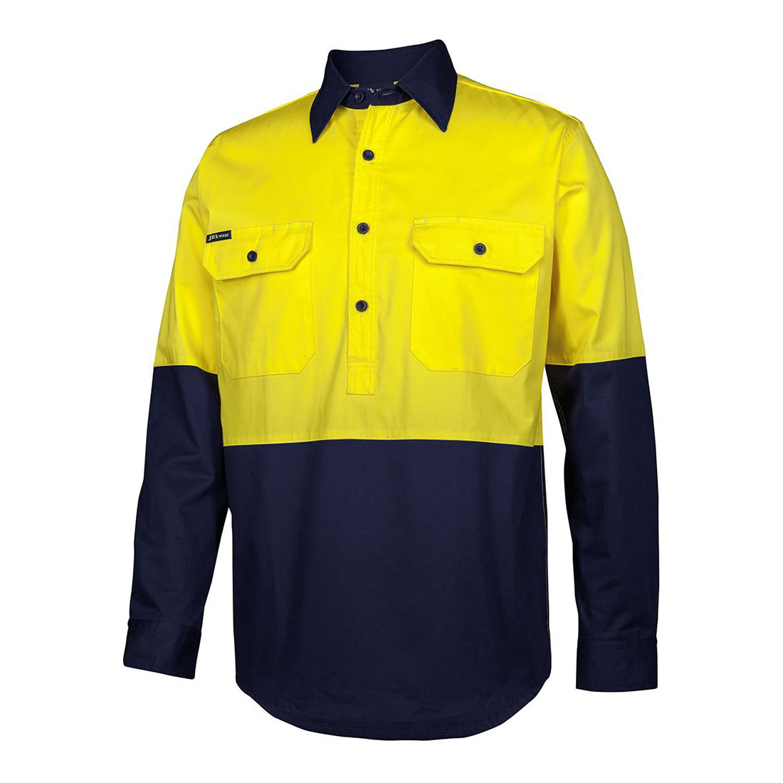 - Contrast panel on front, back lower sleeve and collar