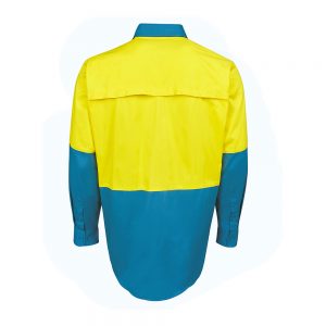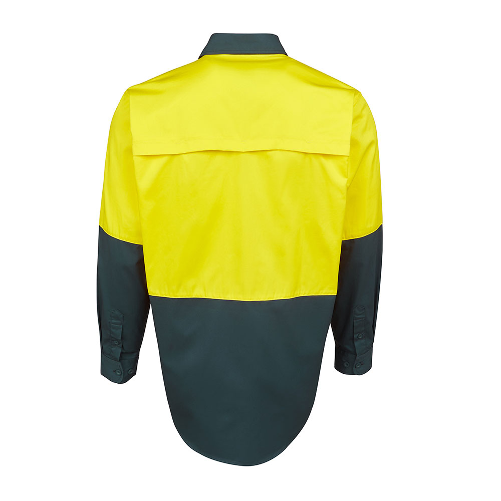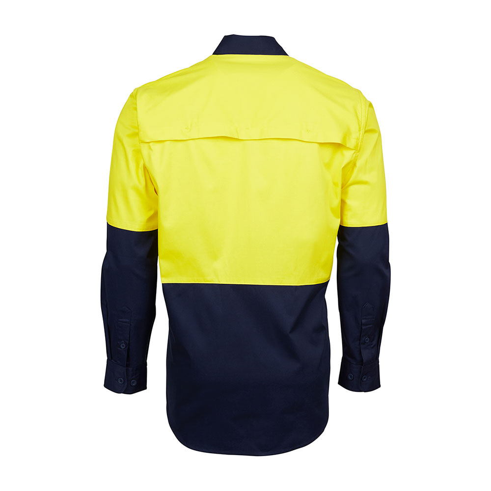 - Wide back neck yoke with concealed mesh, cooling gussets at underarms