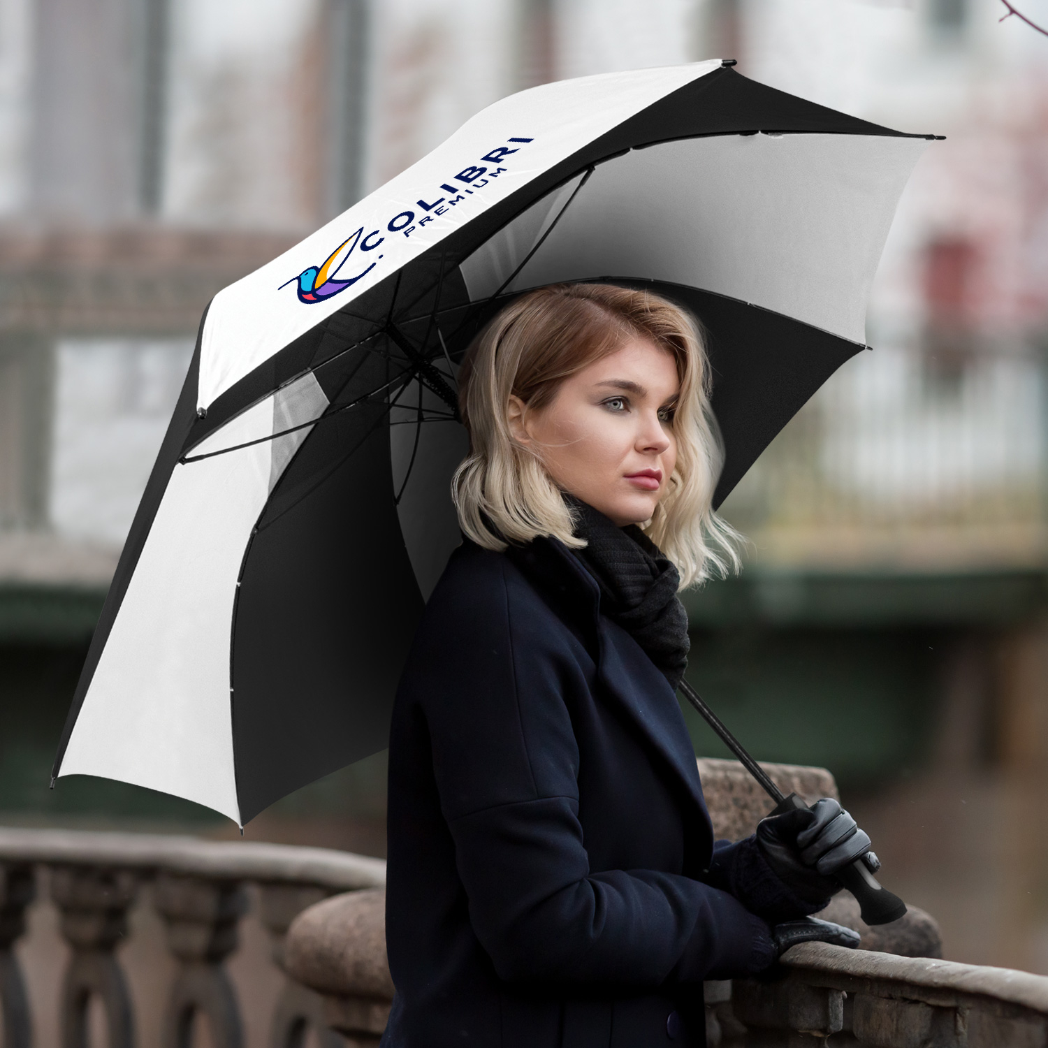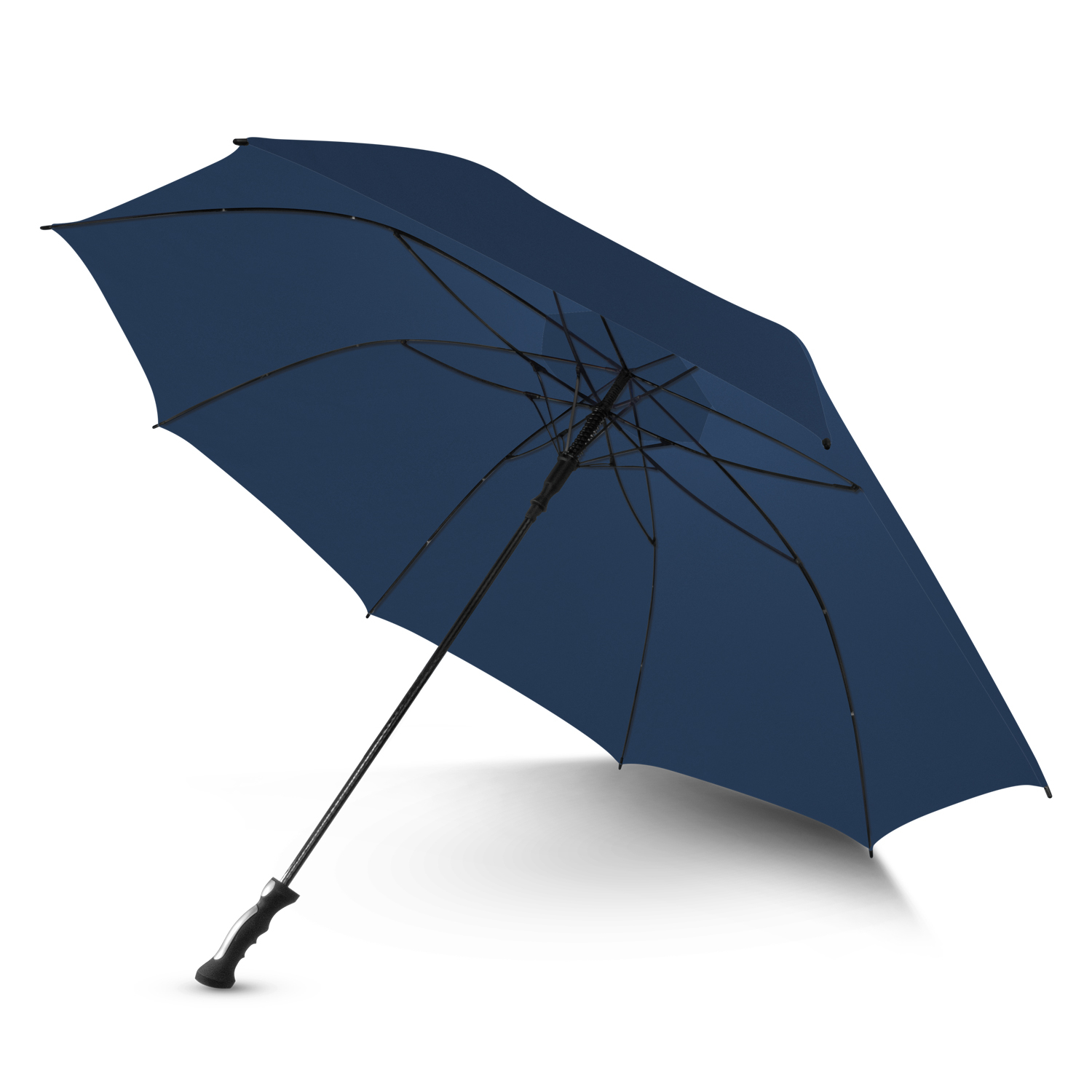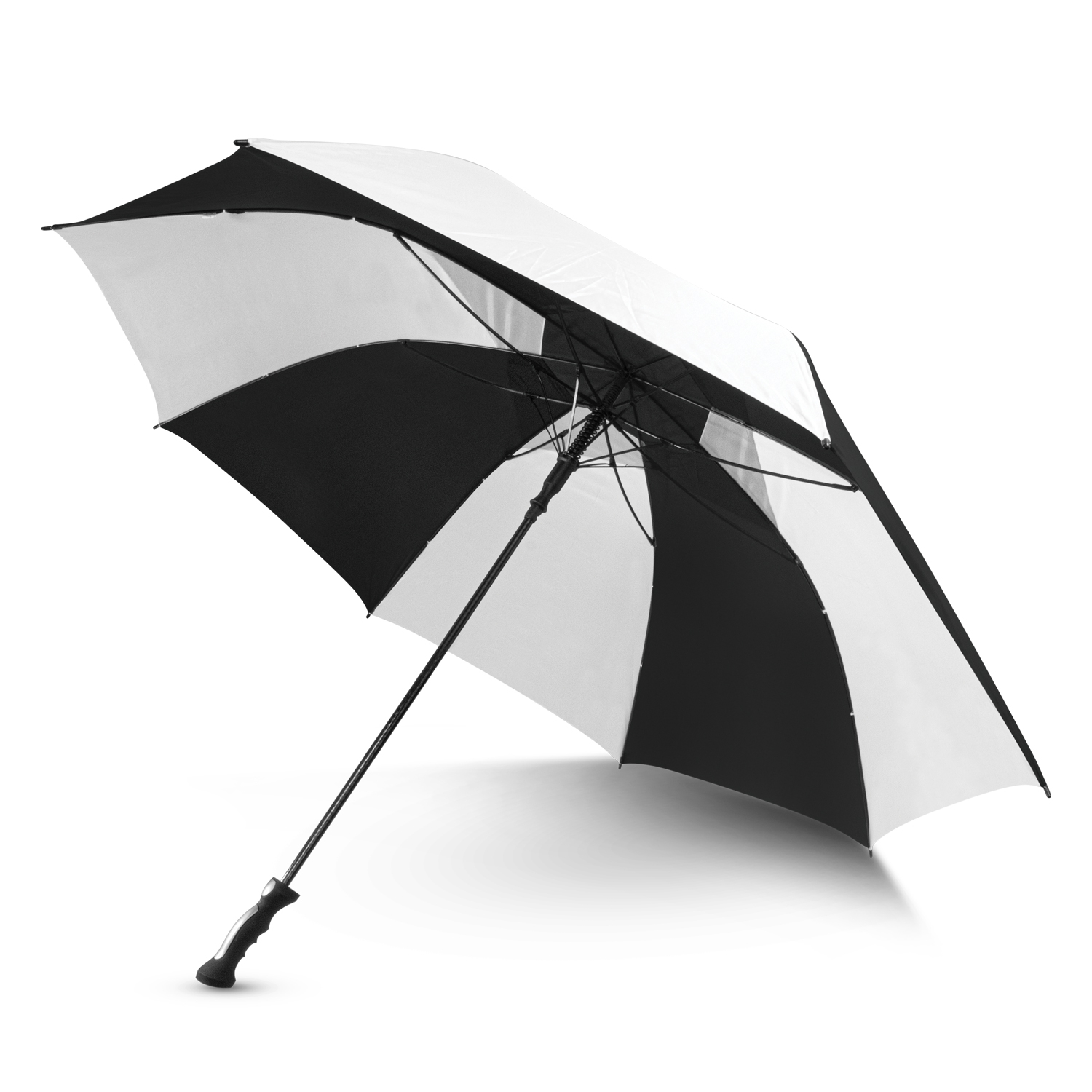 Hurricane is the flagship umbrella range which is designed with quality and practicality in mind. The XXL is the largest Hurricane umbrella and will comfortably fit three people under its super -size canopy. The eight panel, vented canopy is manufactured from nylon and is supported by massive 86cm fibreglass ribs. Other features include automatic opening, a fibreglass shaft, a Velcro tie, plastic tips, a moulded rubber hand grip and a matching nylon sleeve with mesh detailing. The Hurricane logo is tastefully debossed into the base of the handle.