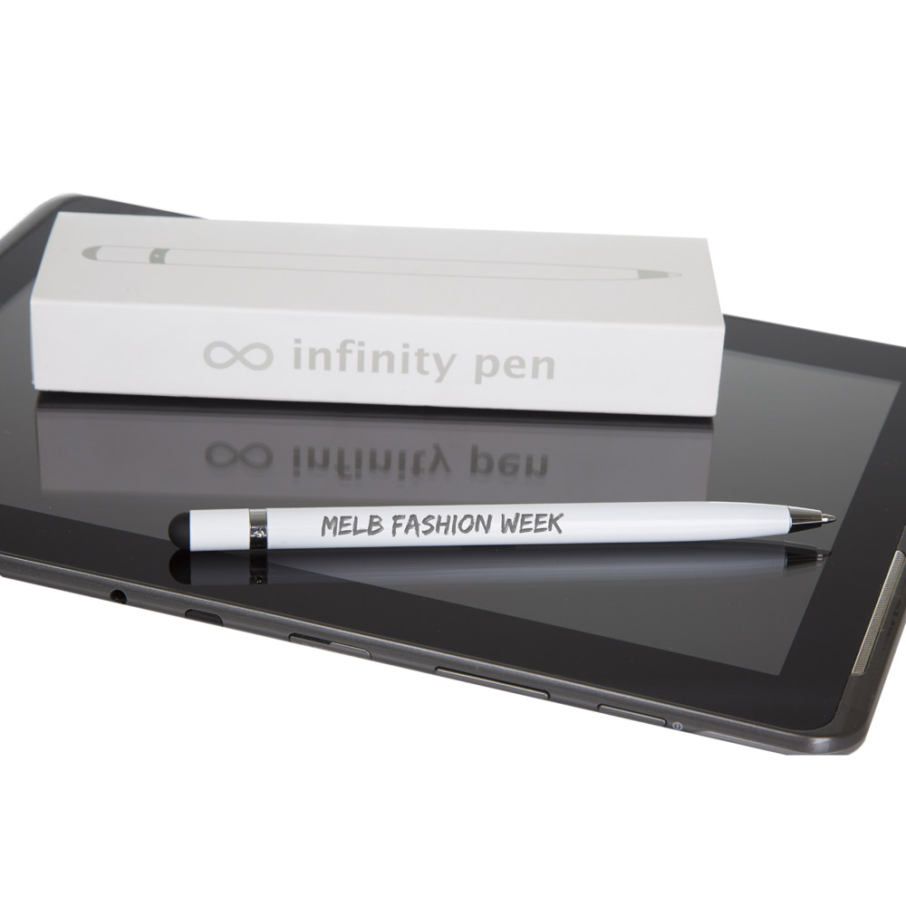 - Each Infinity Pen is boxed in a slide out white box.