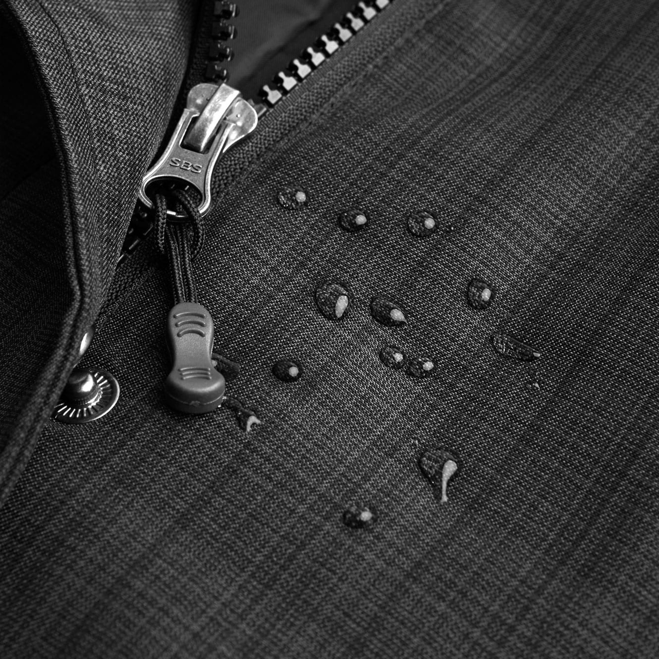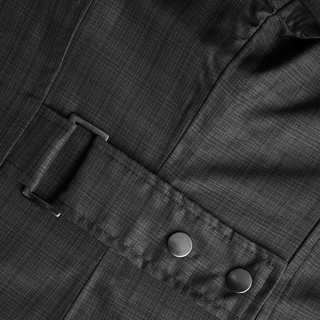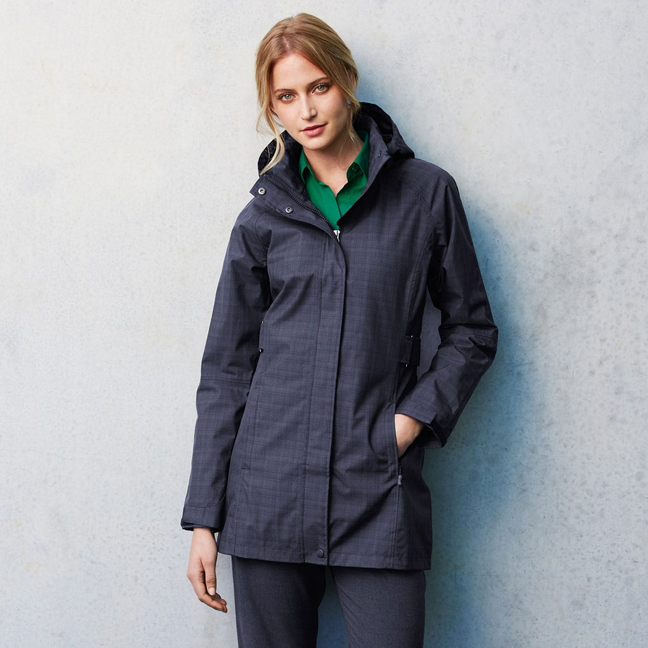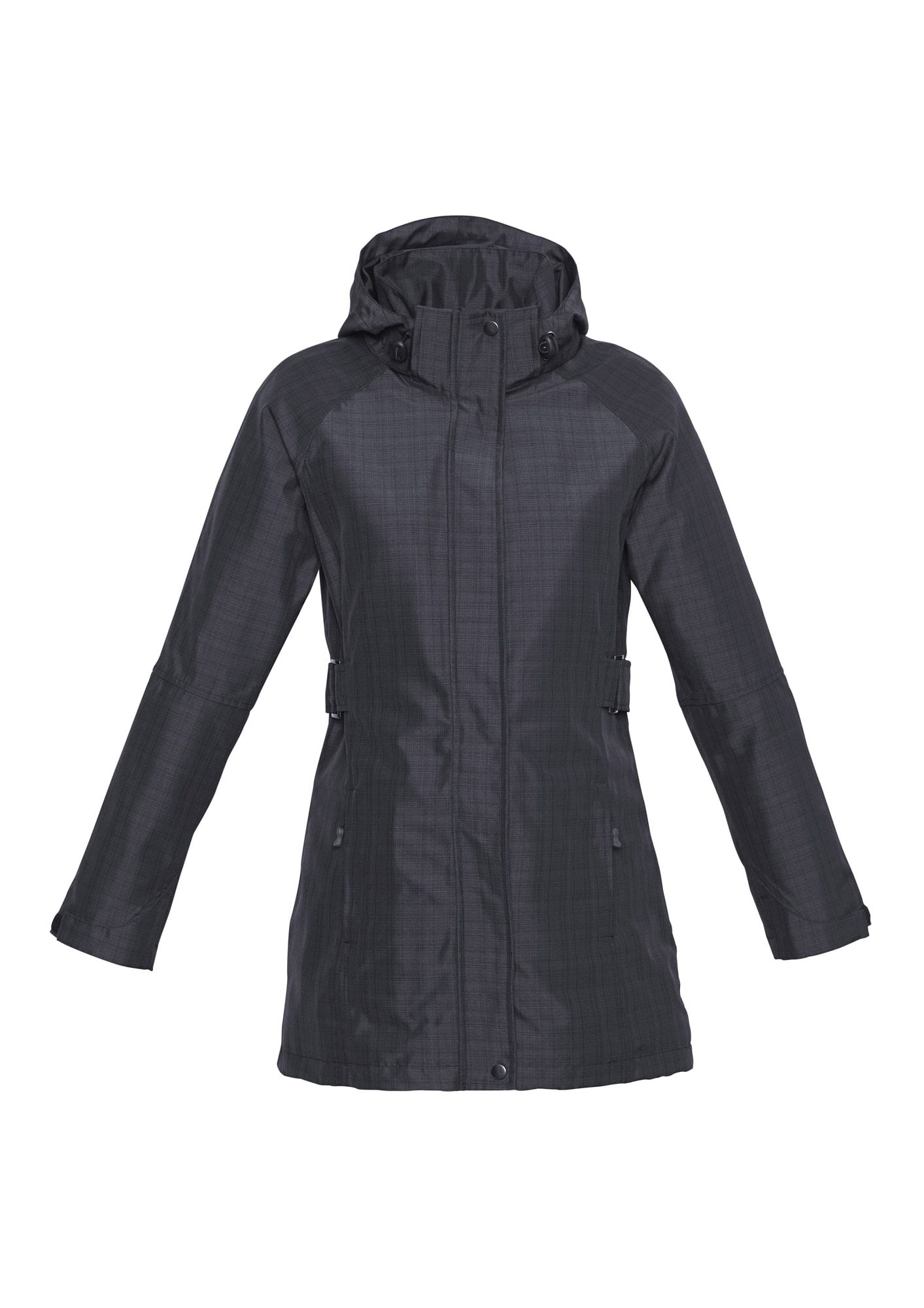 Longline with adjustable waist buckles for shape and a 2-way waterproof front zip with storm flap