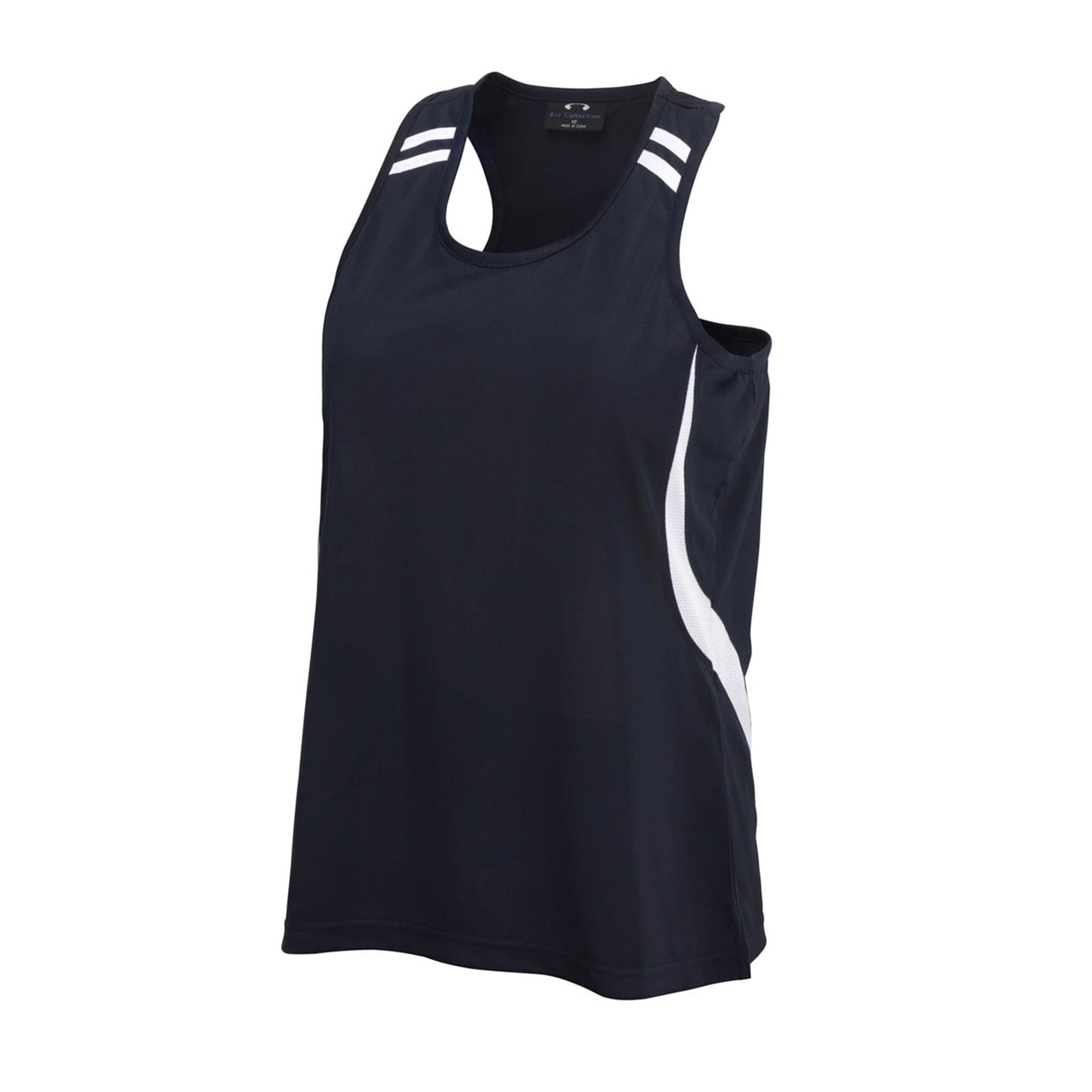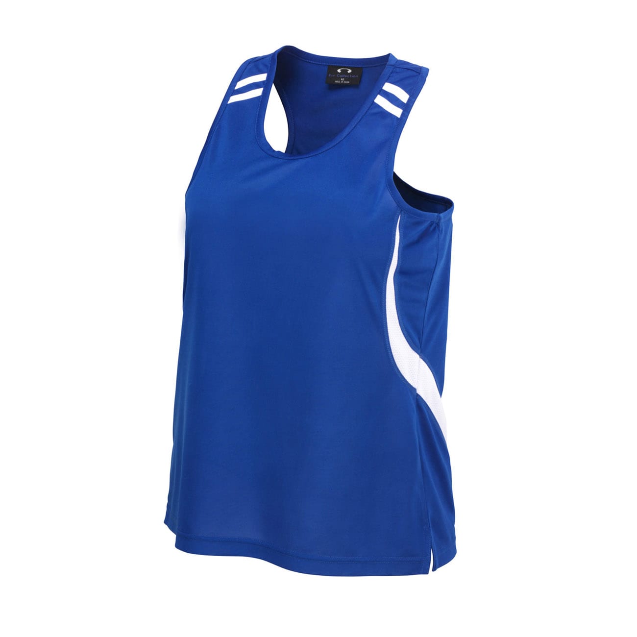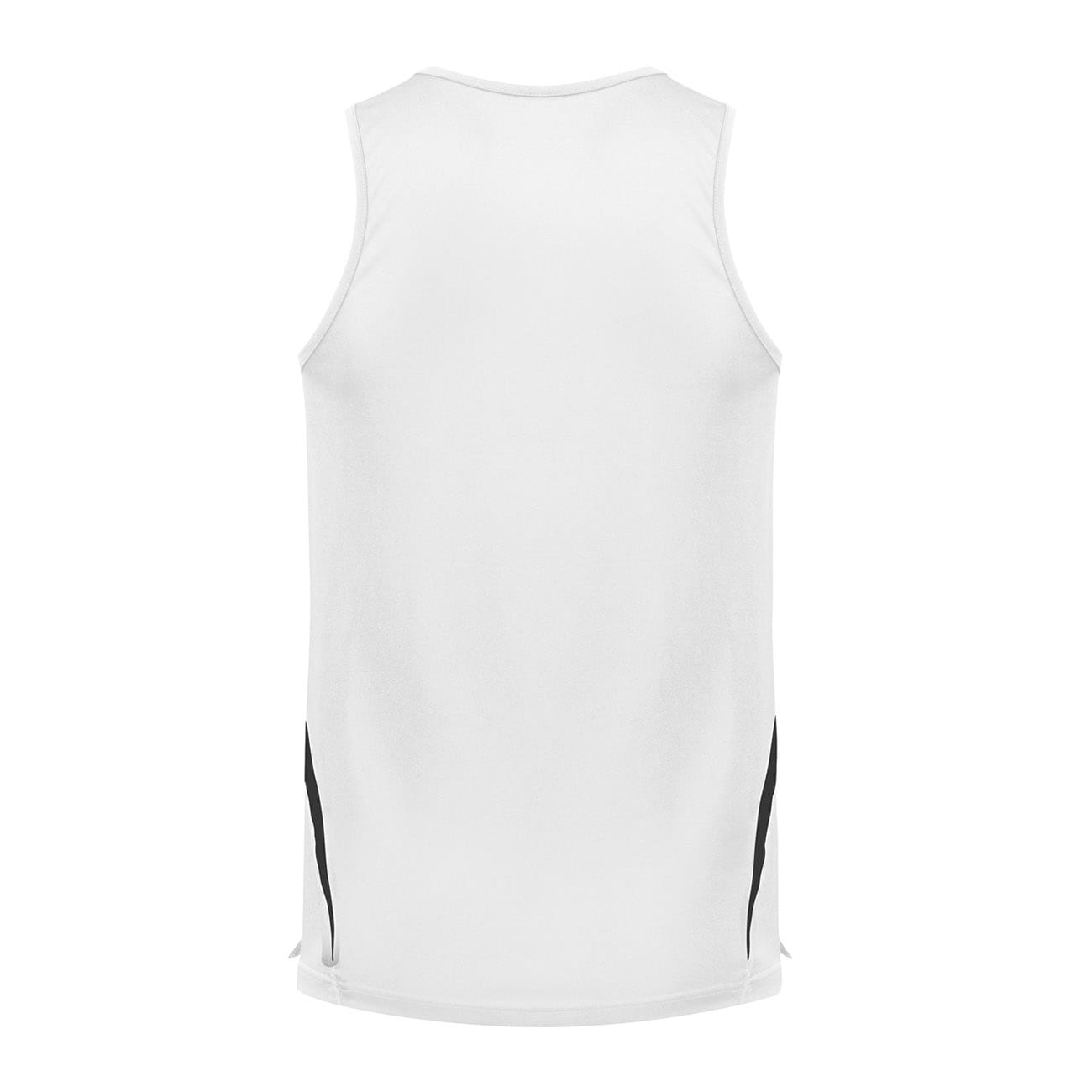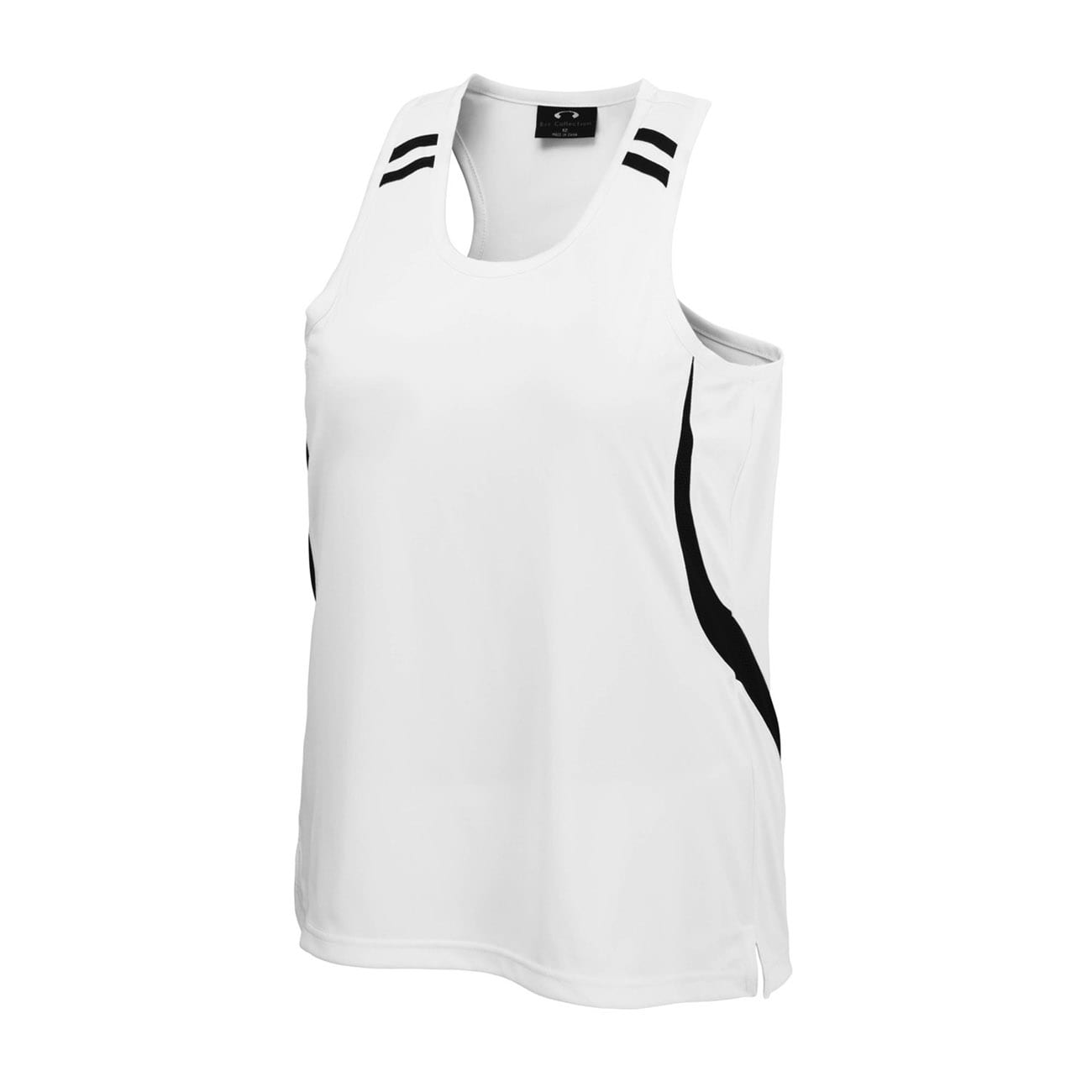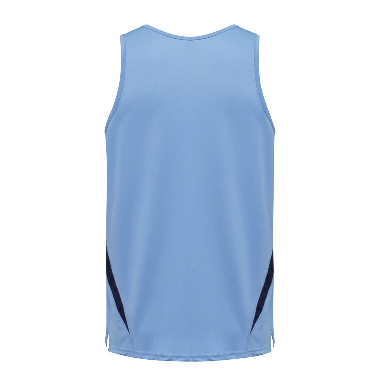 Contrast twin stripe on shoulder and curved panel from raglan curve to back of singlet