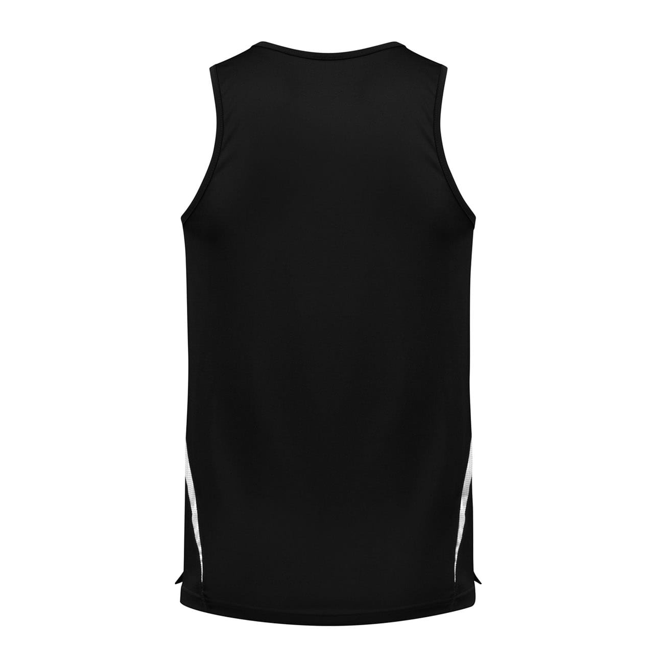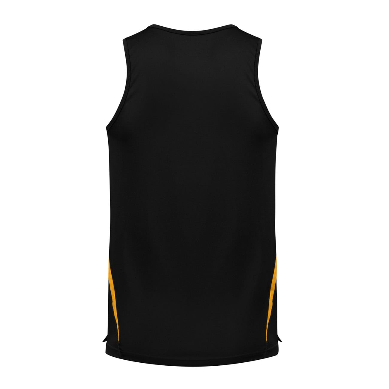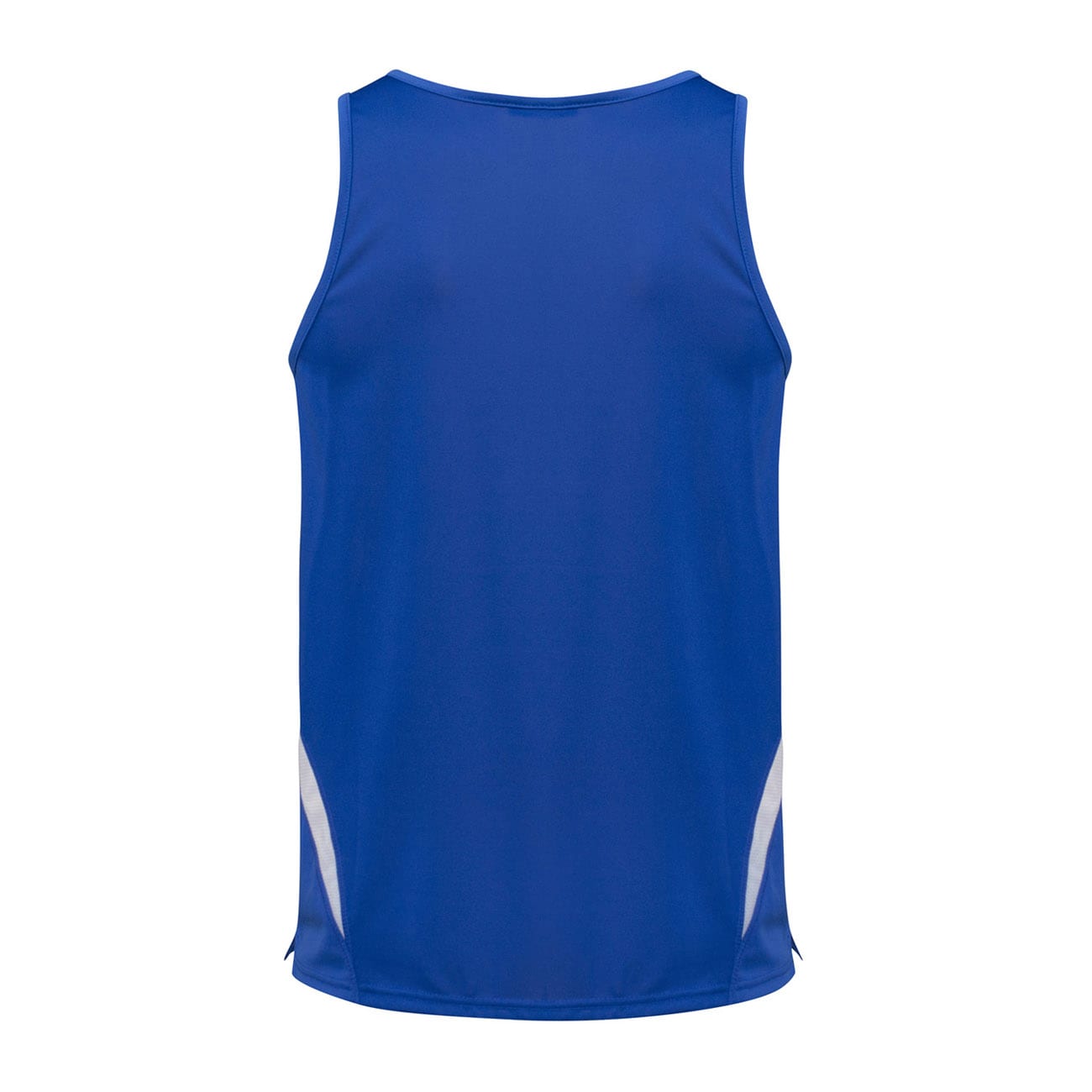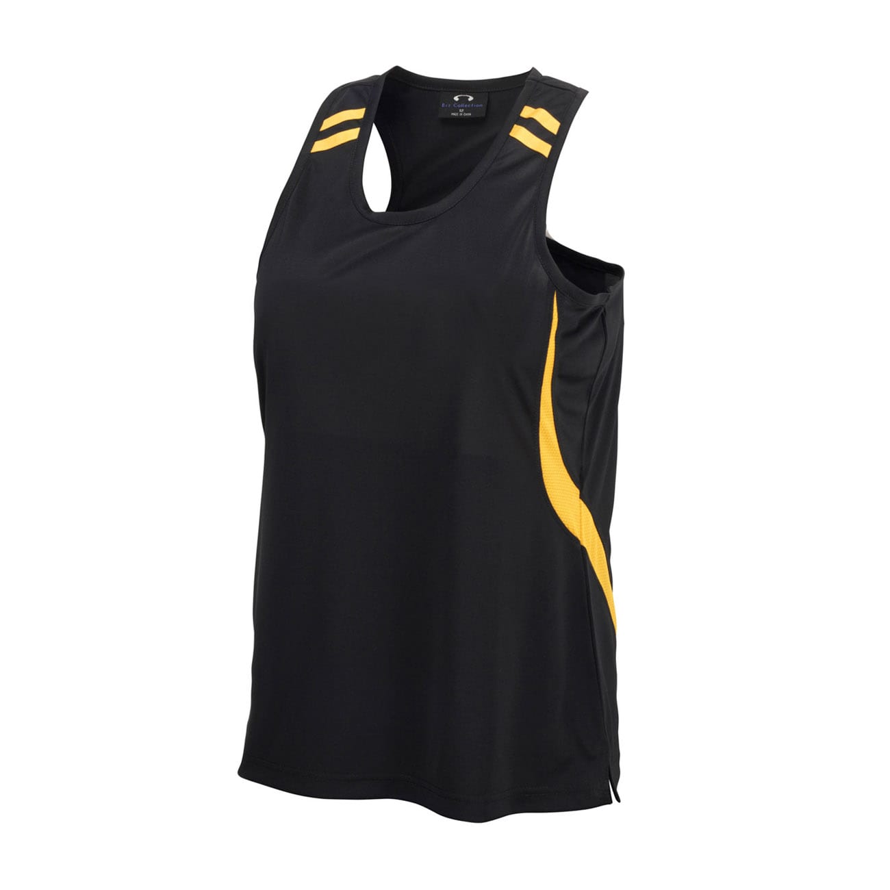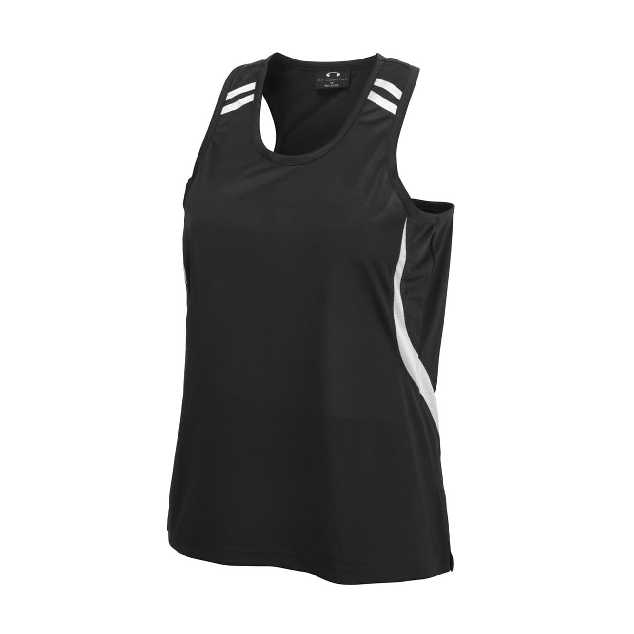 Contrast twin stripe on shoulder and curved panel from raglan curve to back of singlet