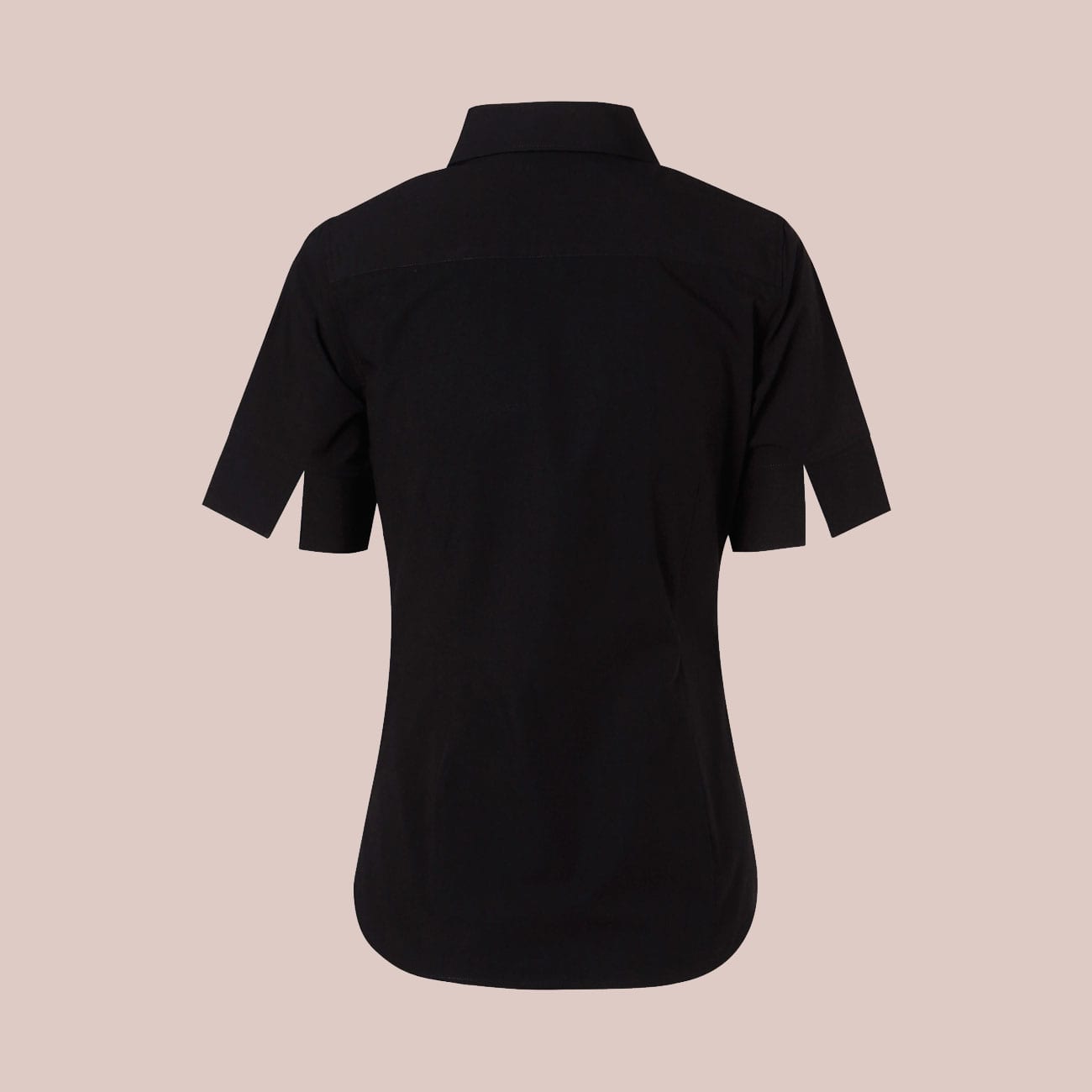 Ladies 3/4 sleeve have open neck and centre-split cuffs.