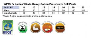 WP15HV Ladies Heavy Cotton Drill Pre-Shrunk Cargo Safety Pants