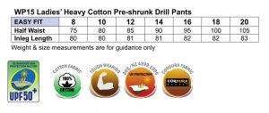 WP15 Ladies Heavy Cotton Drill Pre-Shrunk Cargo Work Pants