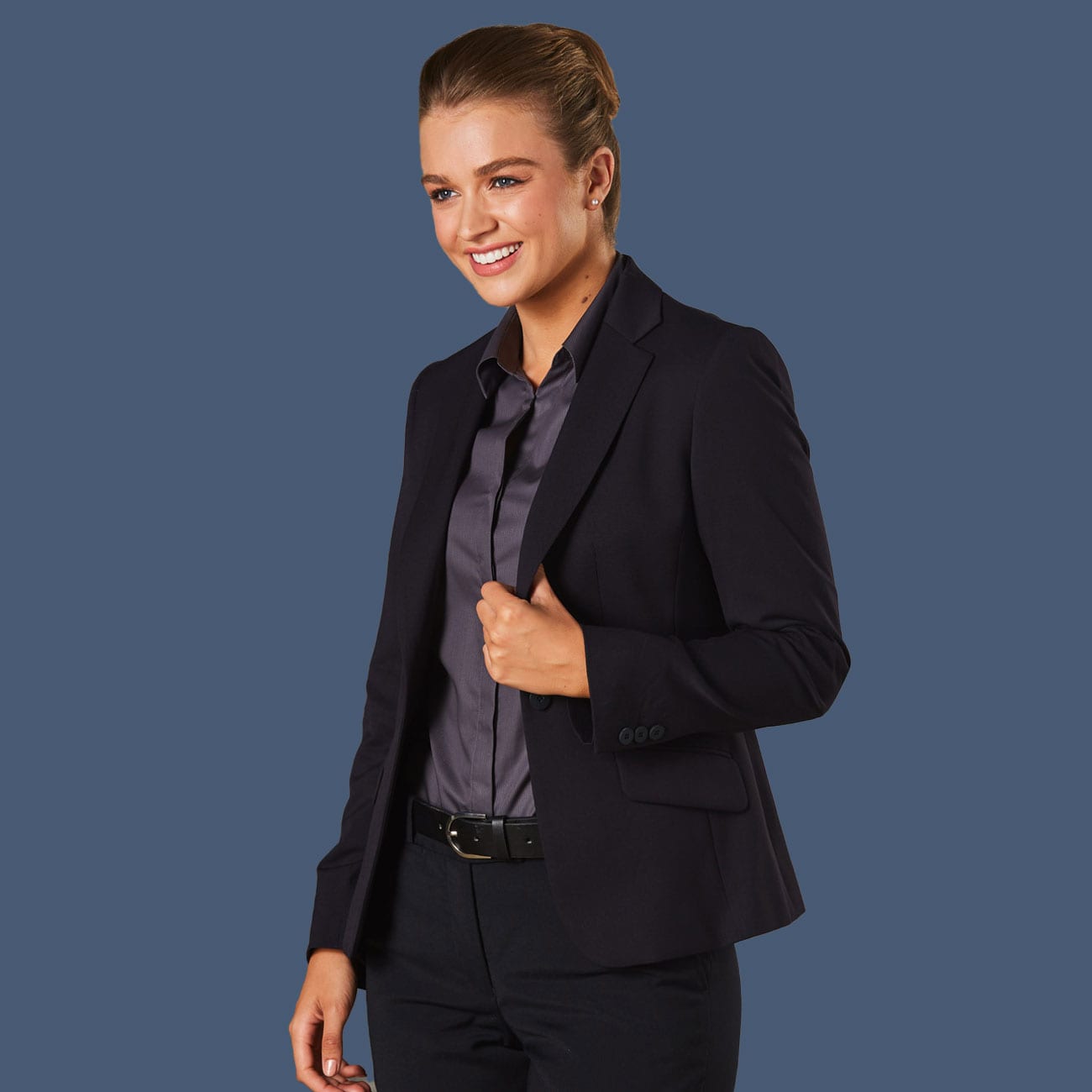 Ladies Poly/Viscose Stretch One Button Cropped Jacket
