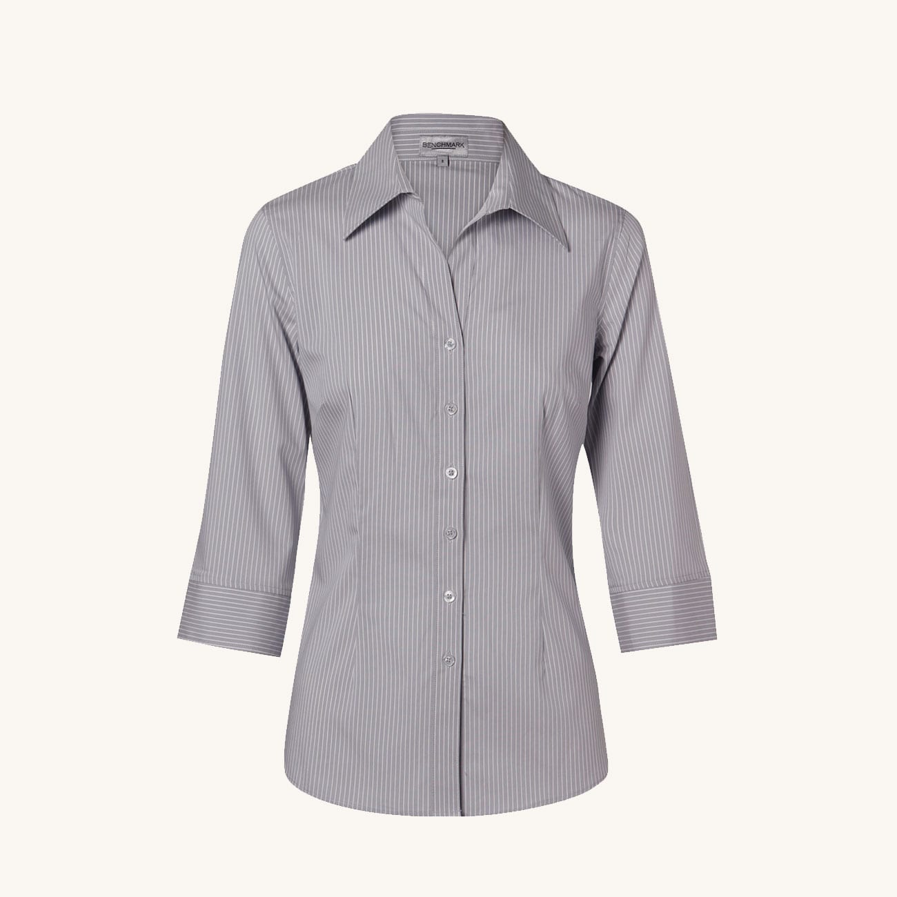 Ladies 3/4 sleeve have open neck and back-split cuffs.
