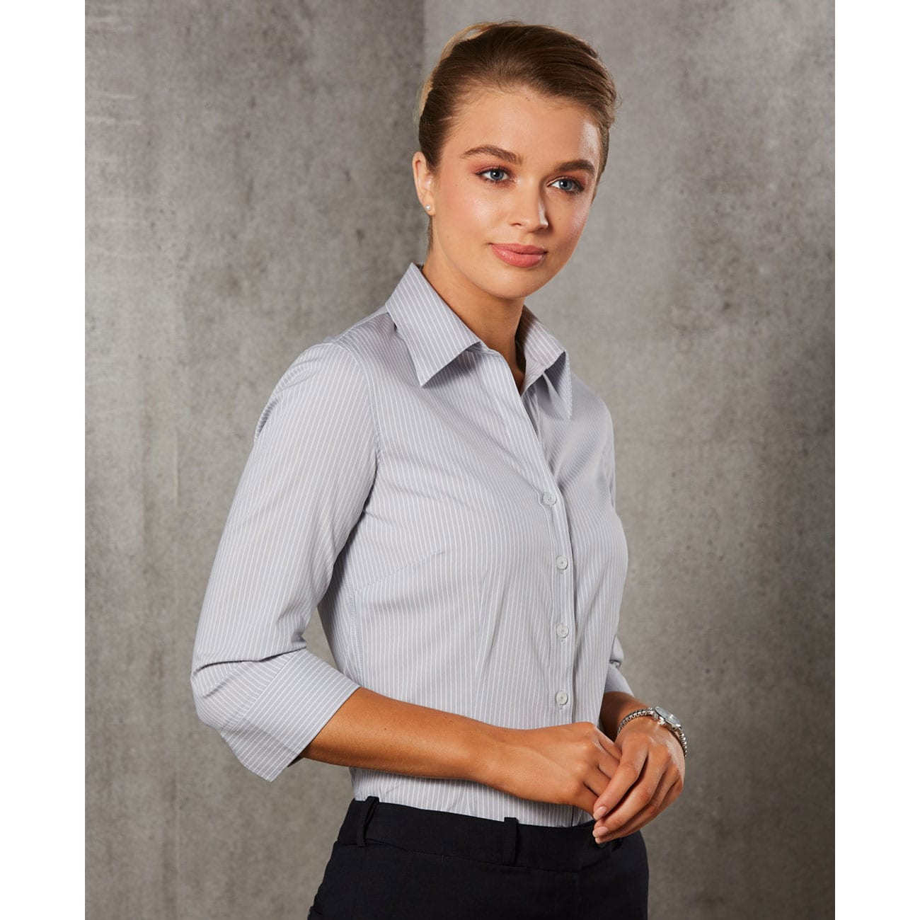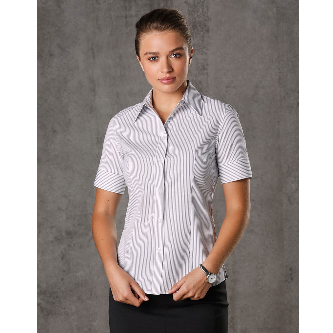 M8200S | M8200Q | M8200L Ladies Ticking Stripe Stretch Shirts